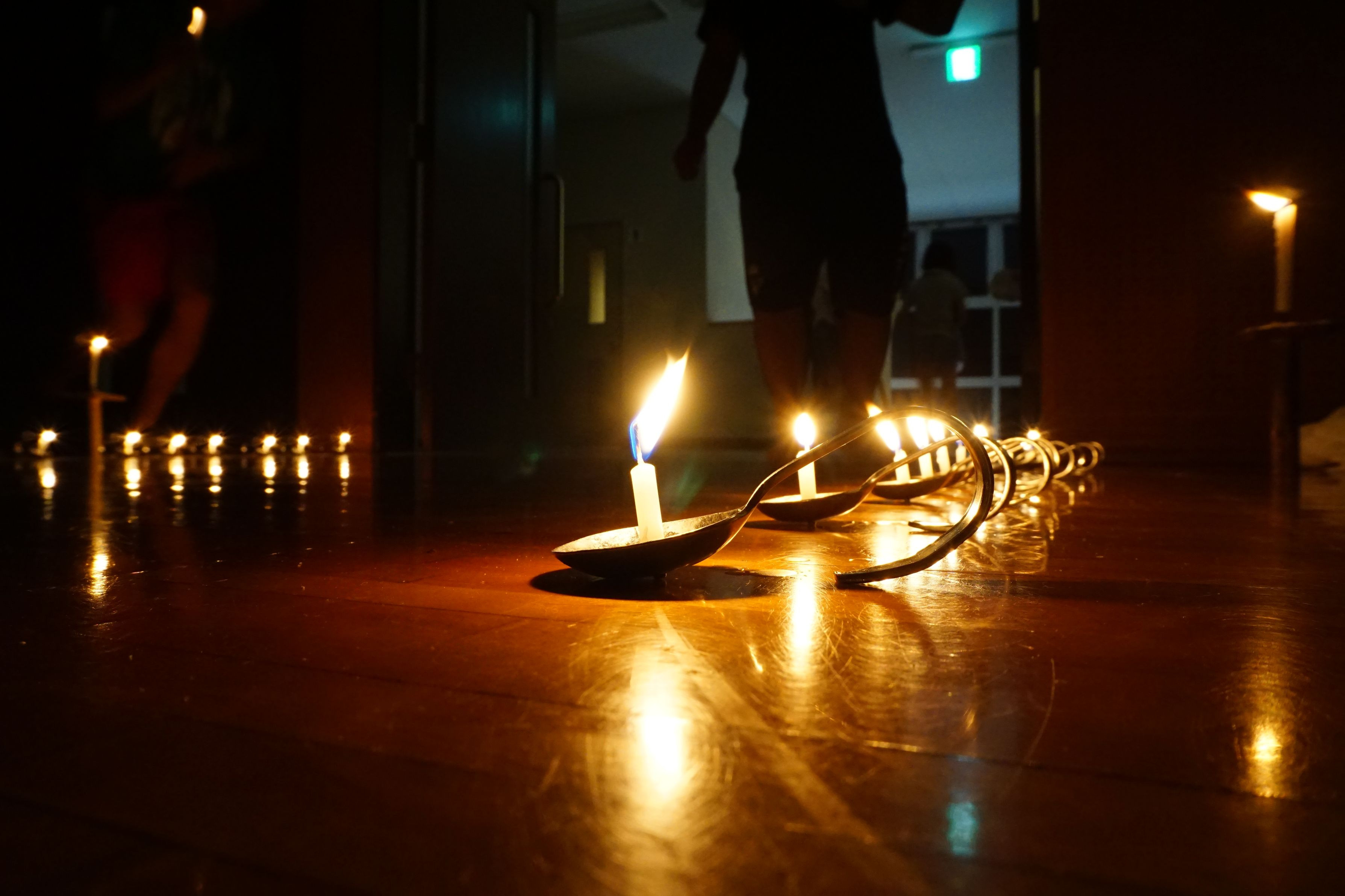 キャンプファイアの屋内版として知られるキャンドルファイアの様子です。キャンプファイア同様にカメラマン泣かせの条件のもと、三脚無しで頑張りました(笑)