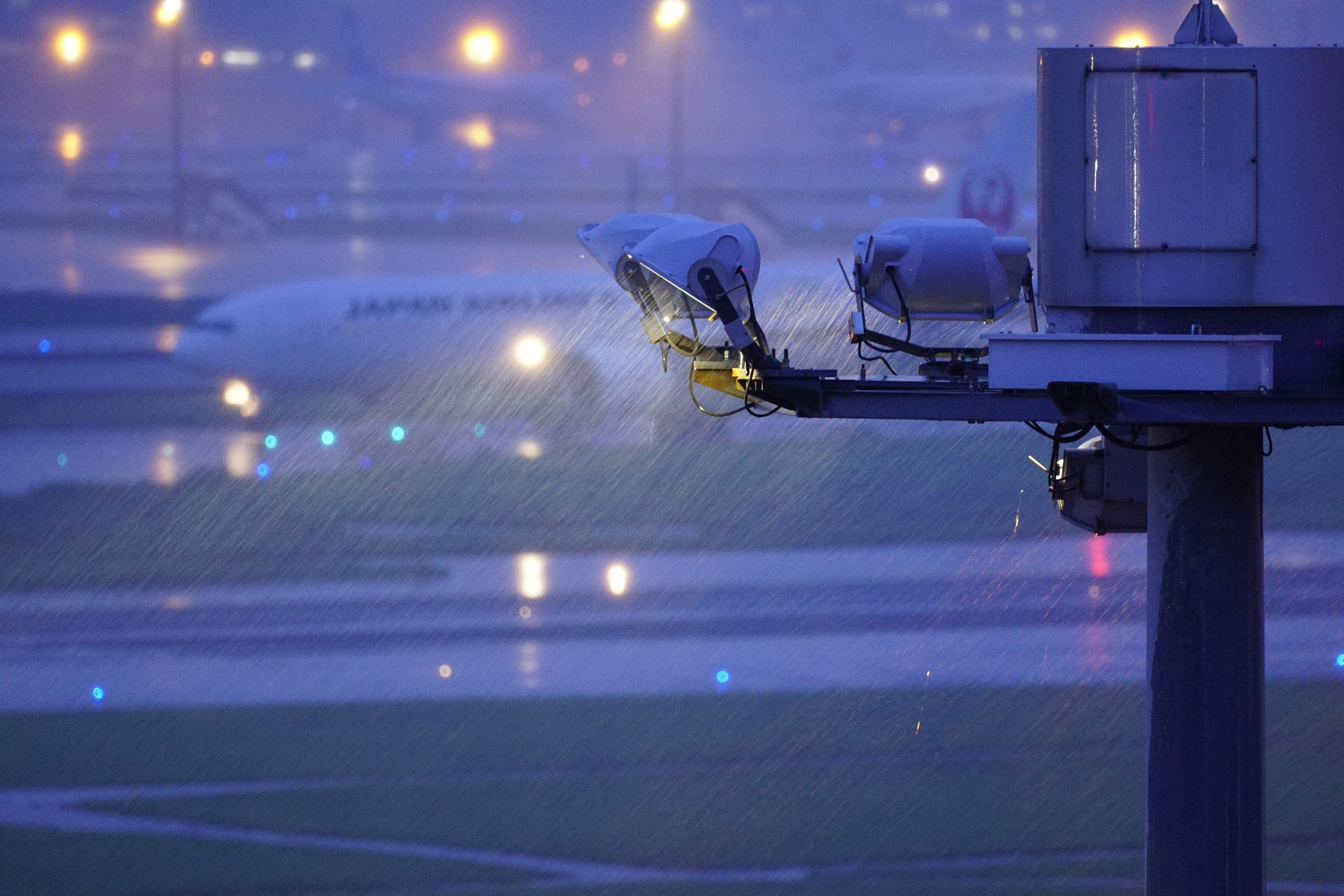 台風が近づいていて撮影していても雨足が強くなるのがわかりました。 自分が乗る飛行機が無事に飛ぶのか不安になりながらシャッターを押していました。