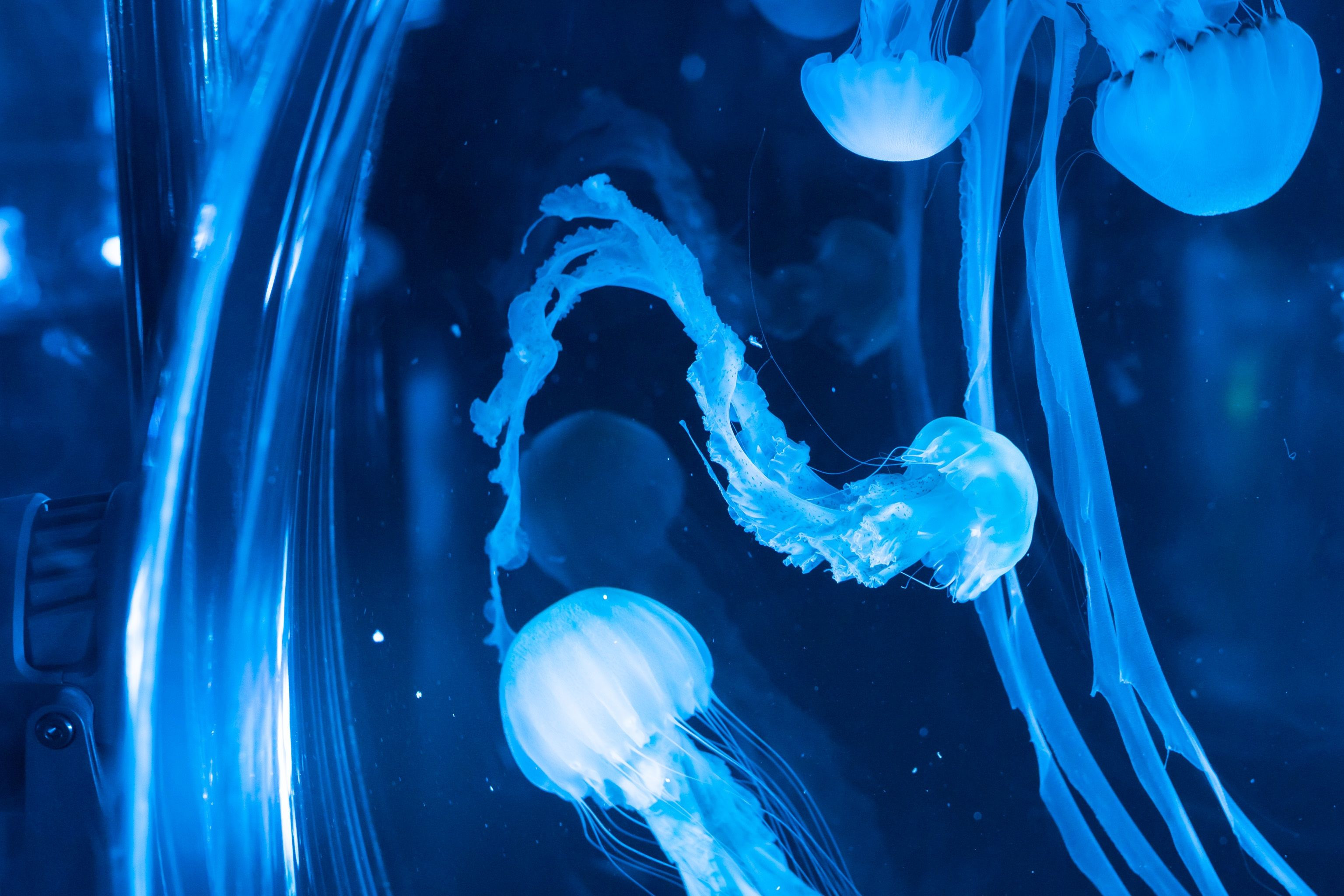 ただただ半透明と思っていましたが、よく見ると斑点状の模様のあるヤツもいました。触手も細かったりヒラヒラだったり、個性ありますね。