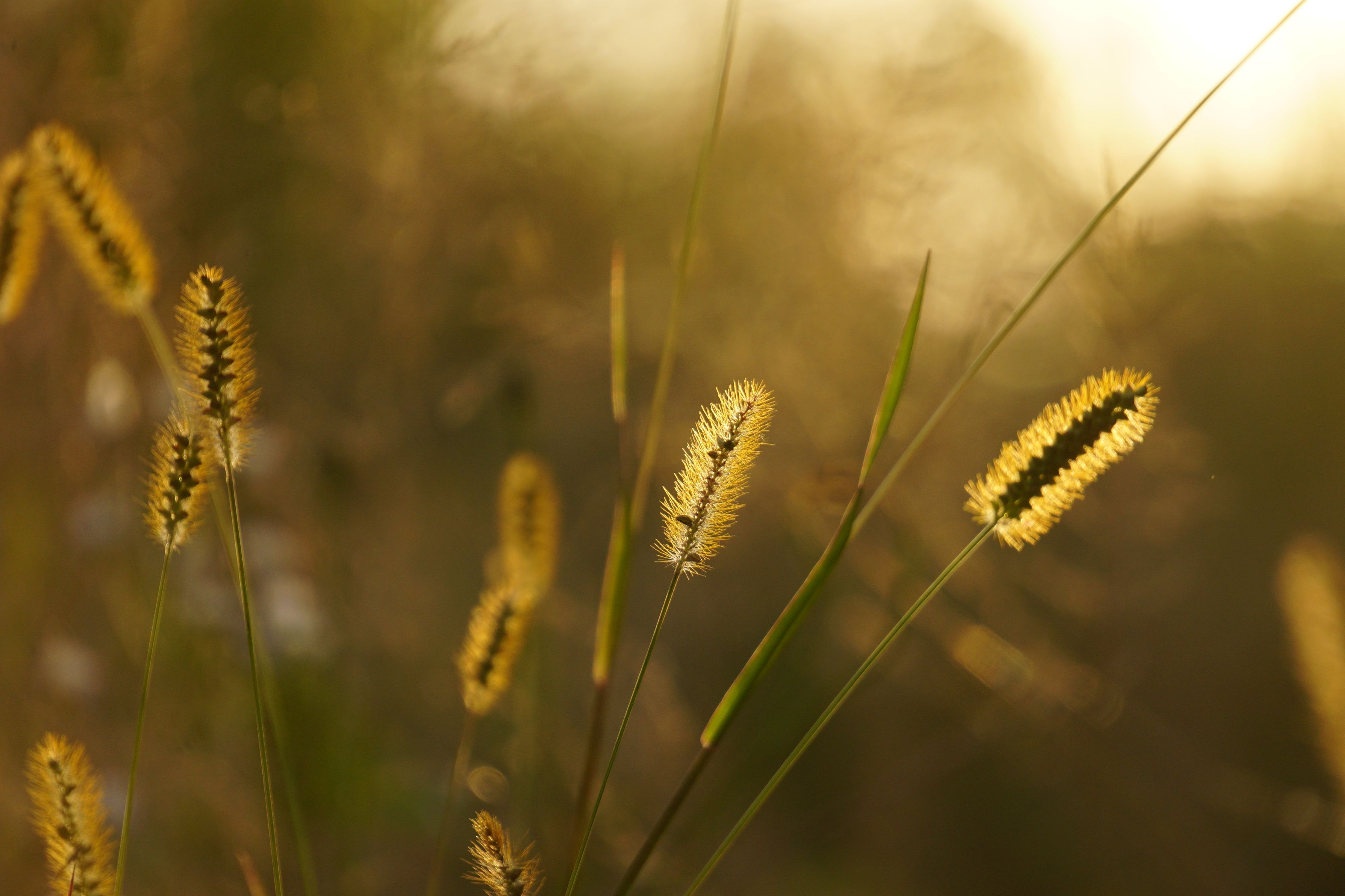 山の上に住んでいるので、近くには草むらだらけ。夕日が当たって光っているのが見えたので撮ってみる。