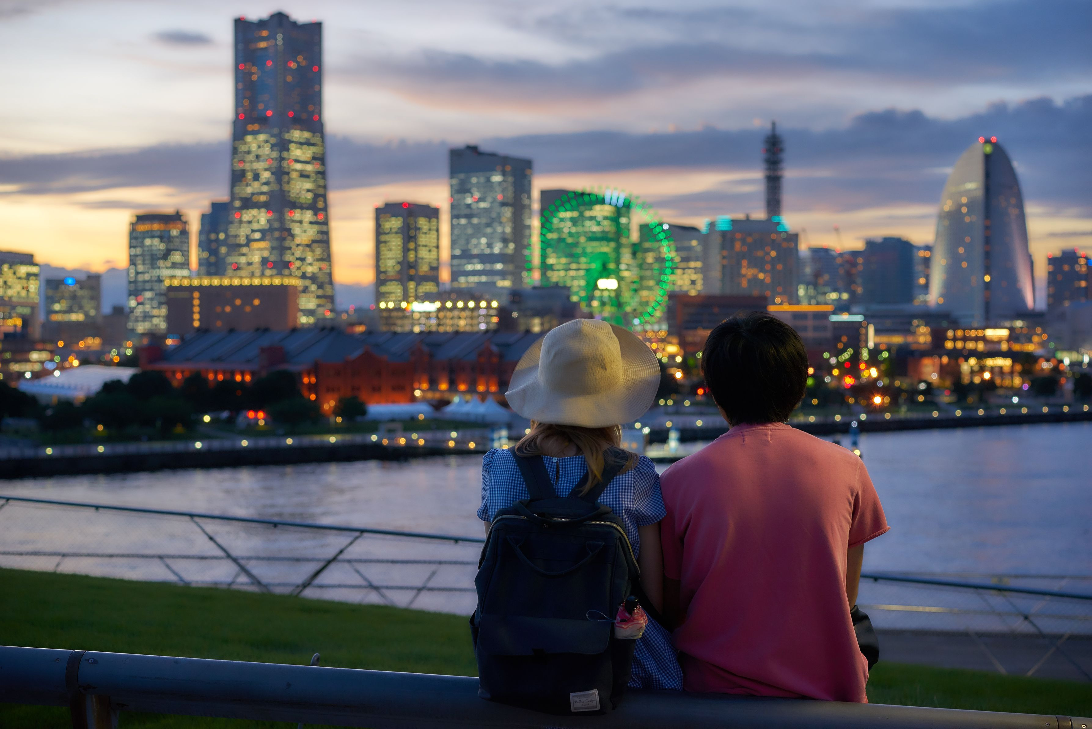 そろそろ夕焼けも終わり、という頃にやってきたカップル。金髪の彼女がすんごく可愛かったんですが、お顔はNG。(^^; 後ろ姿ならOKとのことで撮らせて頂きました。(^^)