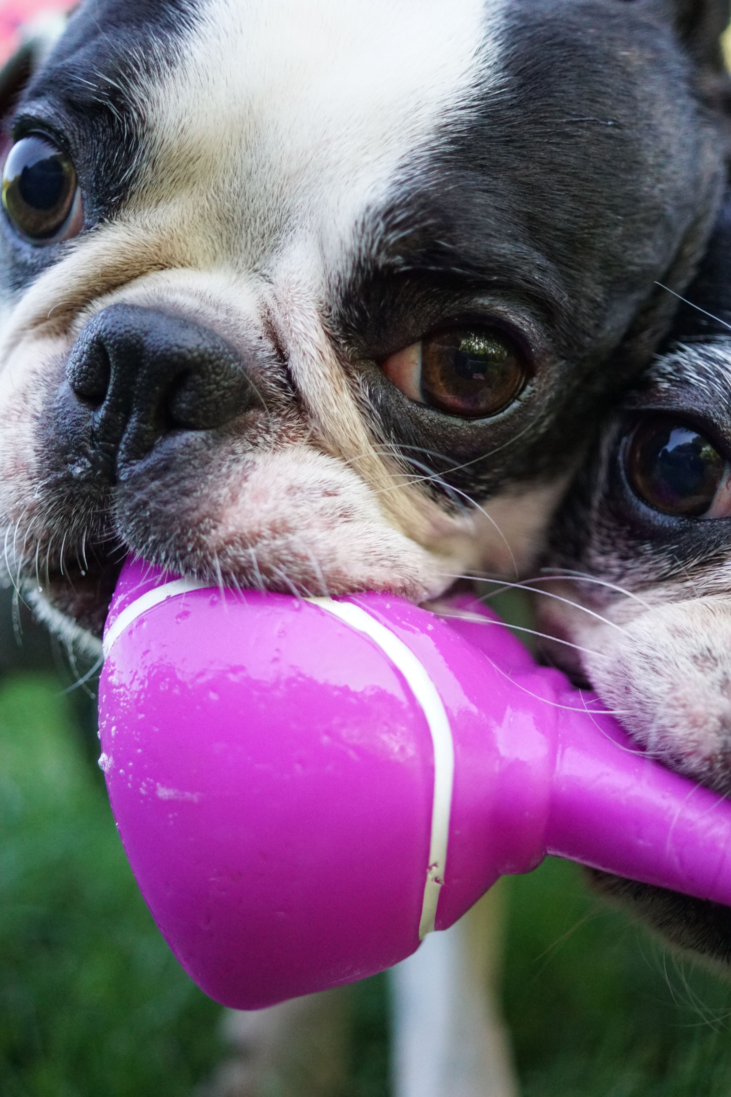 ロングリードを付けて公園の芝生で遊ばせても 私のまわりでグイグイ遊ぶから マクロが使いやすい。( '∇')ウフフフ