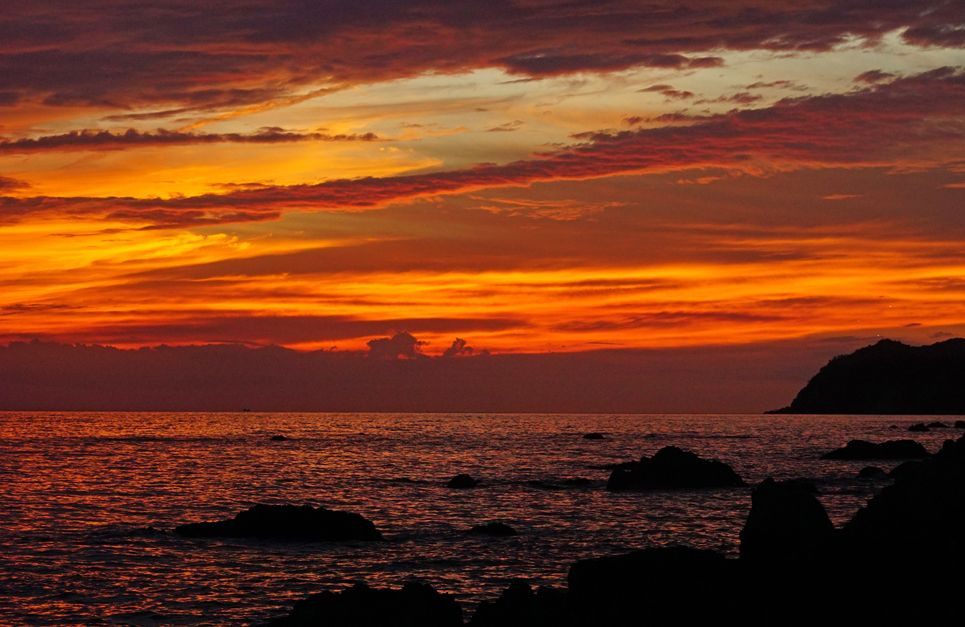 山口県・光市の海岸での夕景です。台風前は、綺麗に焼けることが多いですね。