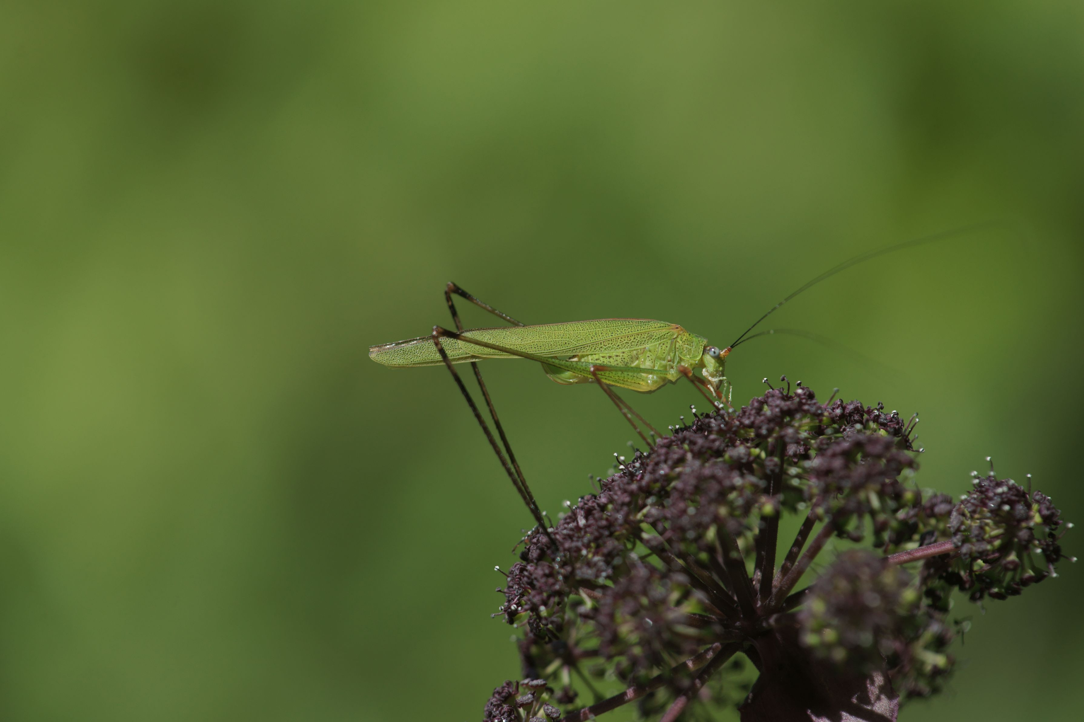 ノダケの花にお洒落なキリギリス?? この日出会ったシックな秋色です 300㎜ F-4