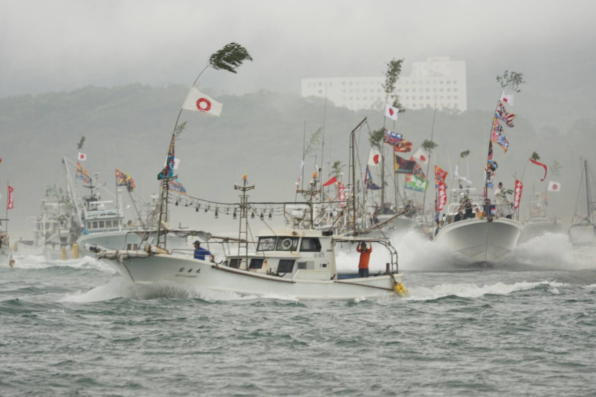 ことしはいろんなところから応援に来てもらい、例年より沢山の船がきてくれたそうです。油価格の高騰で実際には漁師さんにとっては痛手らしいです。しかし、毎年続く海上パレードは壮大でした。広角よりは望遠が役に立ちました。