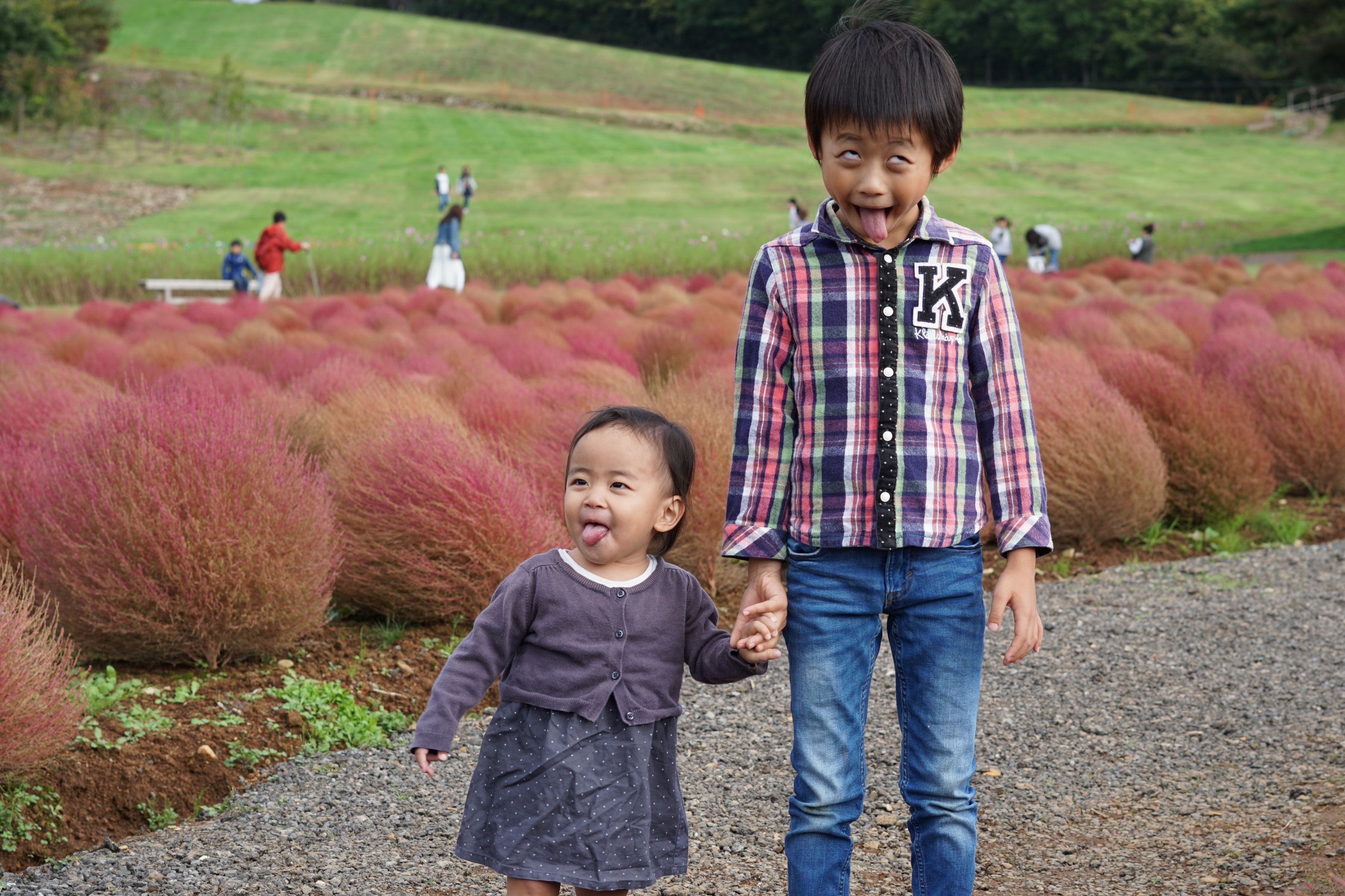 綺麗なコキアが満開を迎えています。よーし、いい写真を撮るぞ… あのー、その顔やめてもらっても😅