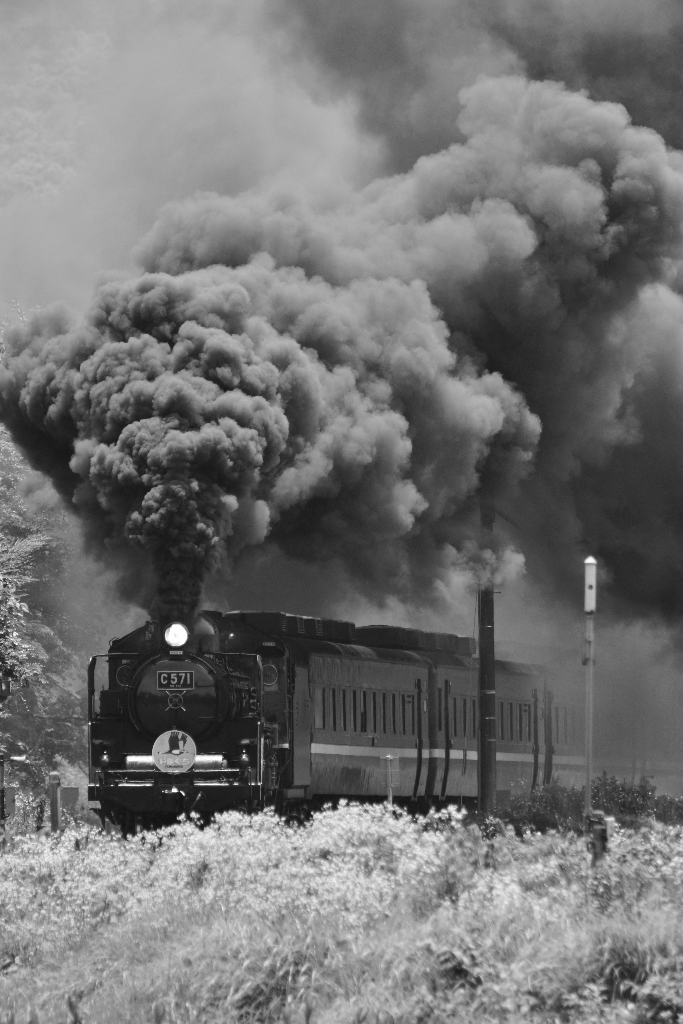 SLやまぐち号 徳佐駅発車直後のC57 1号機。猛煙を夢中で撮影。楽しかった(^^)