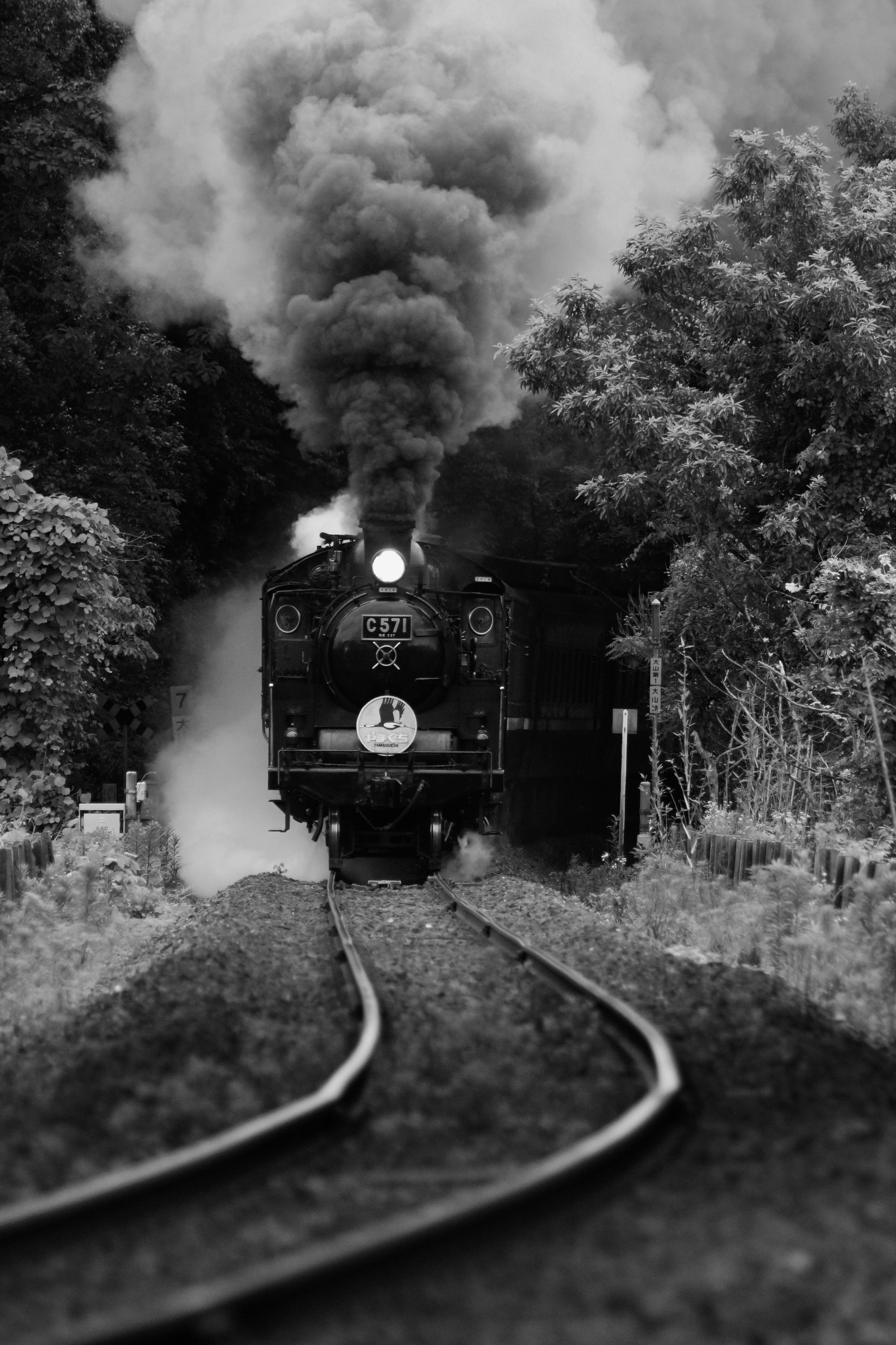 SLやまぐち号 C57 1号機 市街地を抜け、これから長い登りに突入。