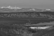 SL冬の湿原号 C11 171号機 雄阿寒雌阿寒岳をバックに湿原を行く(快晴で極寒のサルボ展望台から)