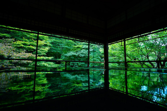 chelseaさんの新涼の茶室をみて、そうだ京都へ行こうと思い立ち瑠璃光院にいってきました。後一ヶ月したら真っ赤に染まる京都の緑。
