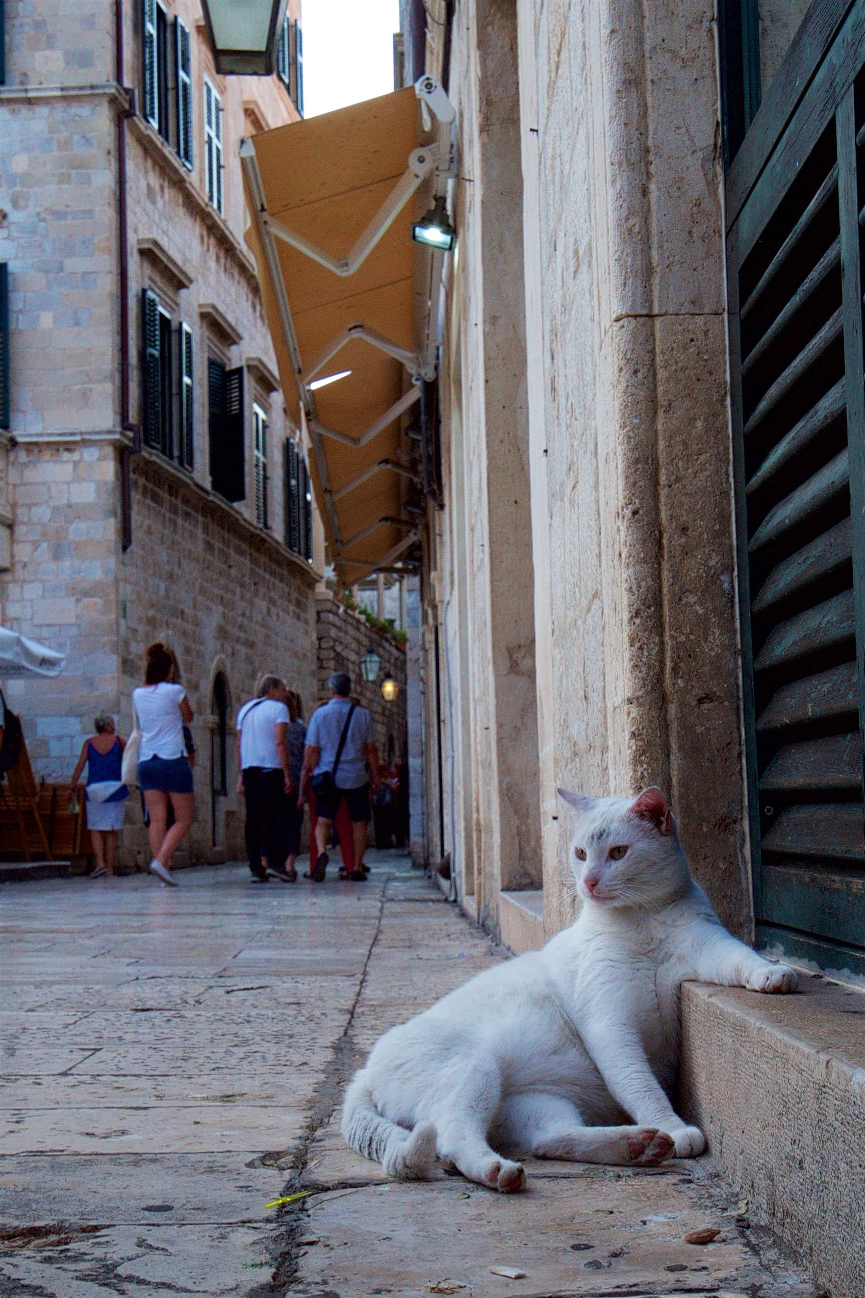 スプリットの旧市街で出会った、すっかり観光客慣れして太々しい態度のニャンちゃんです。