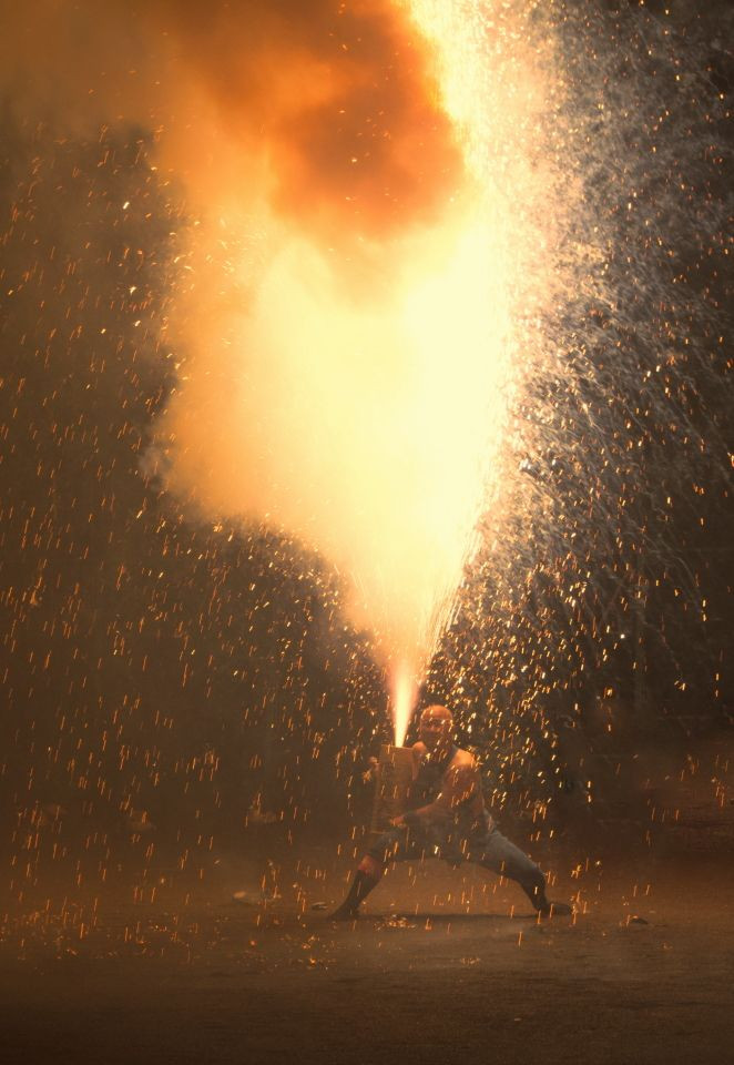 手筒花火熱演の様子です。決まっていますね!