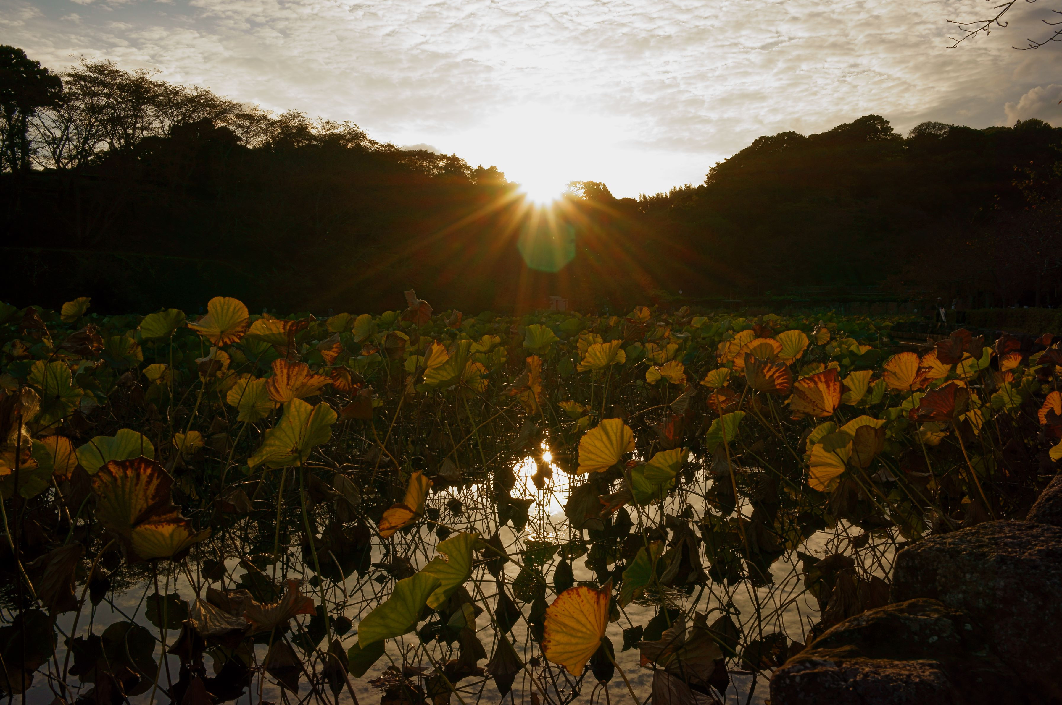 枯れてきた蓮の葉が、生き生きとした瞬間がありました。 子供と散歩中、いつも持ち歩いているNEXで撮影しました。