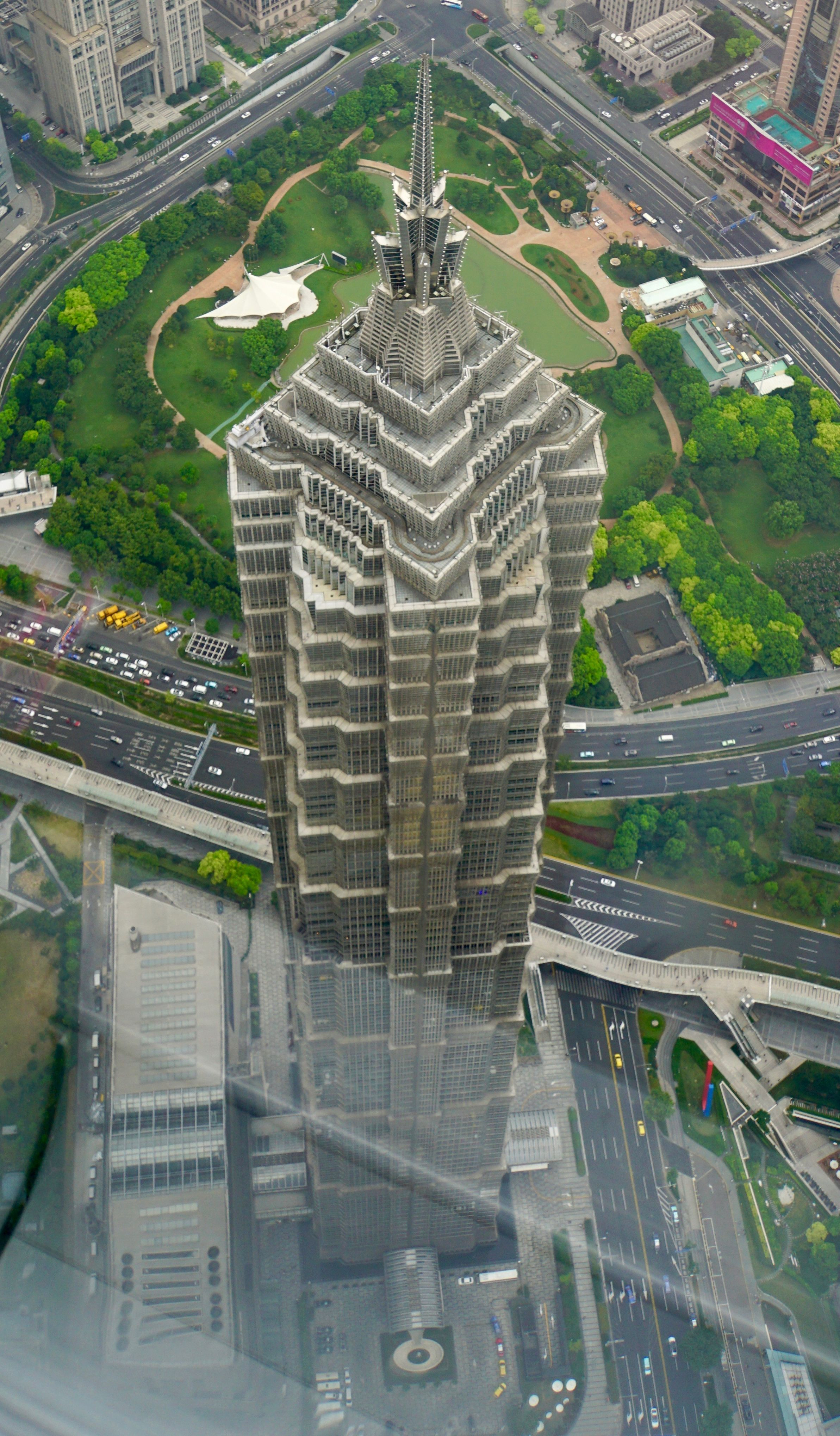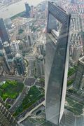 上海の摩天楼を構成する高層ビル見下ろす絵。 世界2番目に高いビルの「上海中心」より。
