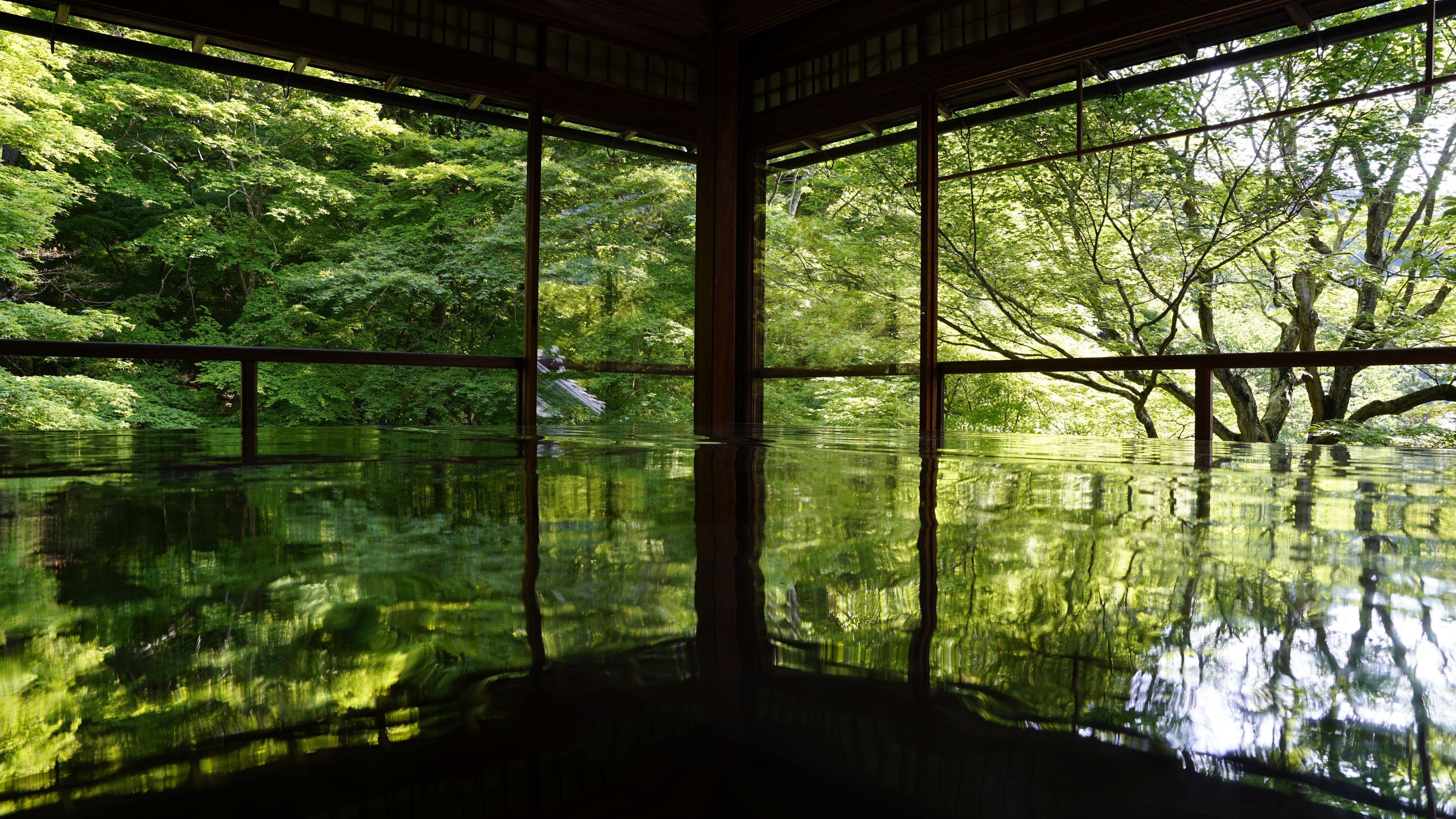 鏡面世界が現れる初夏の瑠璃光院。いつ行っても魅力のある場所です。