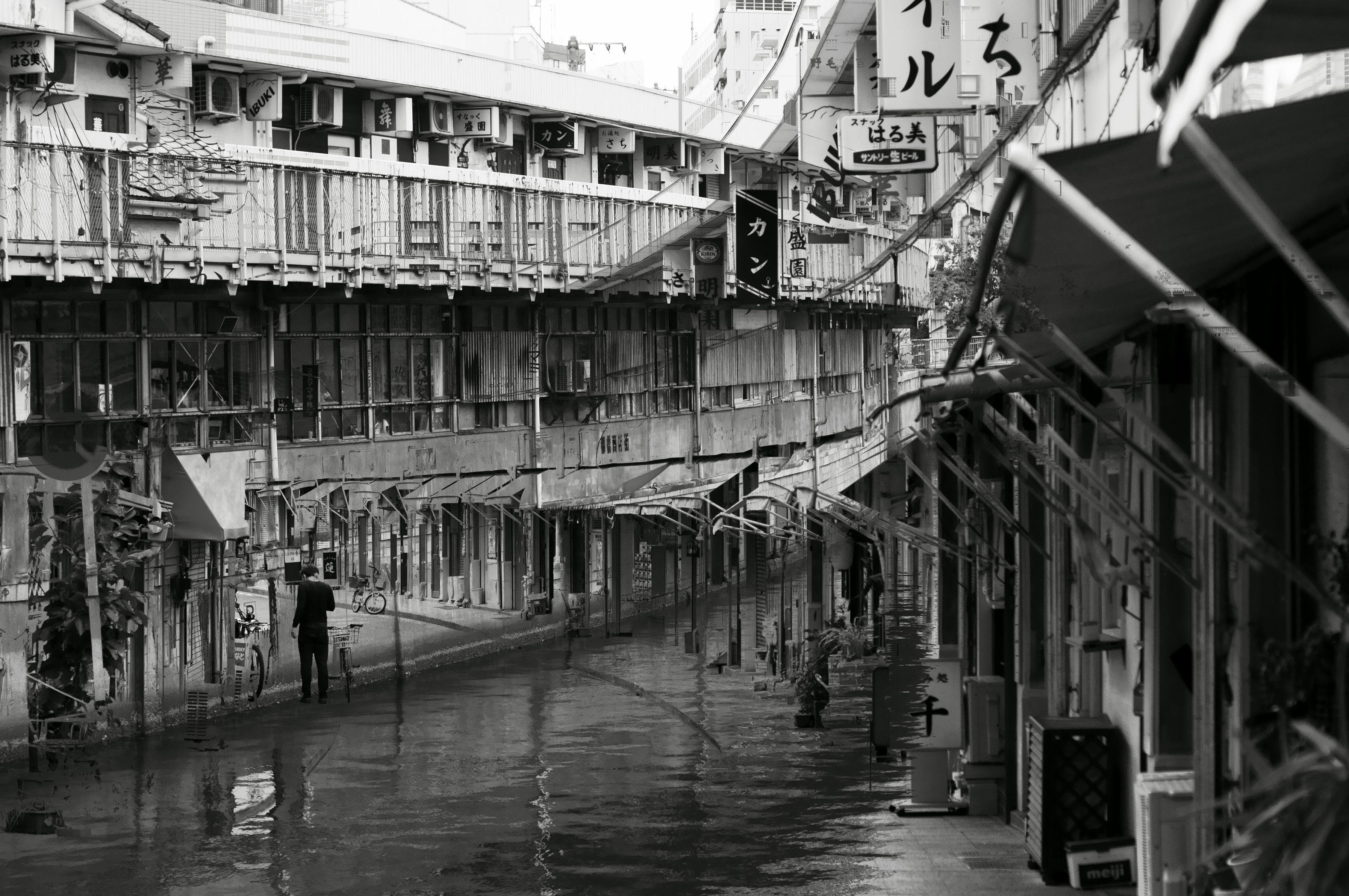 大岡川の都橋から宮川橋までカーブの長屋風飲み屋・ハーモニカ横丁