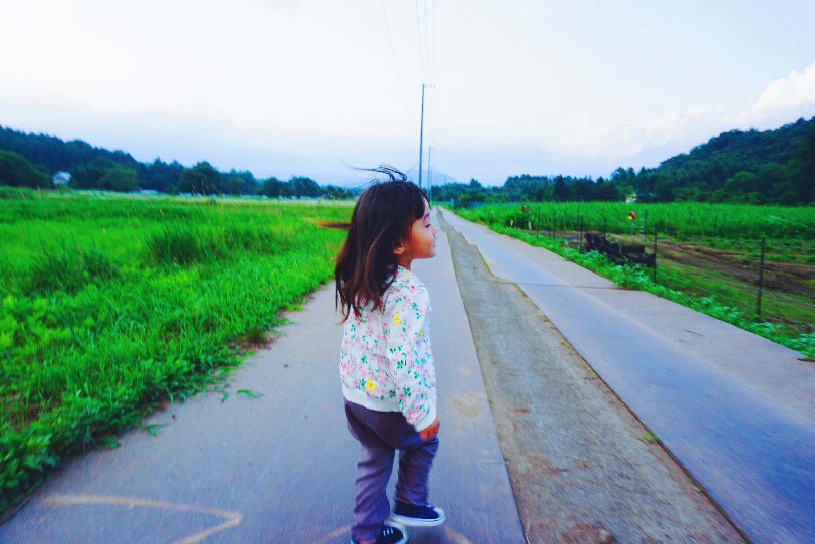軽井沢で浅間山をバックに撮りました。(雲で見えないけど…) 風が気持ちいいの…。:°ஐ♡と、こんな表情を見せてくれてビックリ。 2歳なんですが、女っぽいですね。