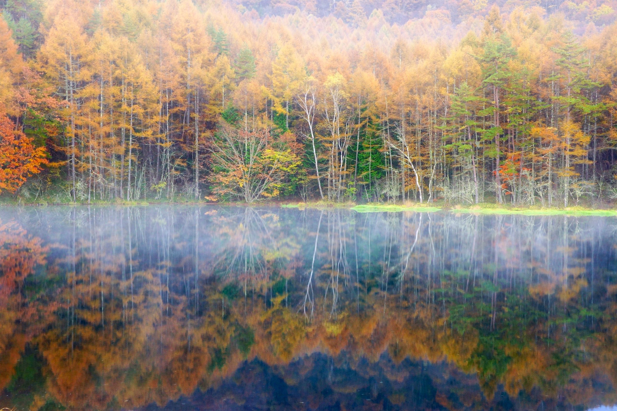 霧の動きに合わせて色々と撮っては見たものの やっぱりここは映り込み。