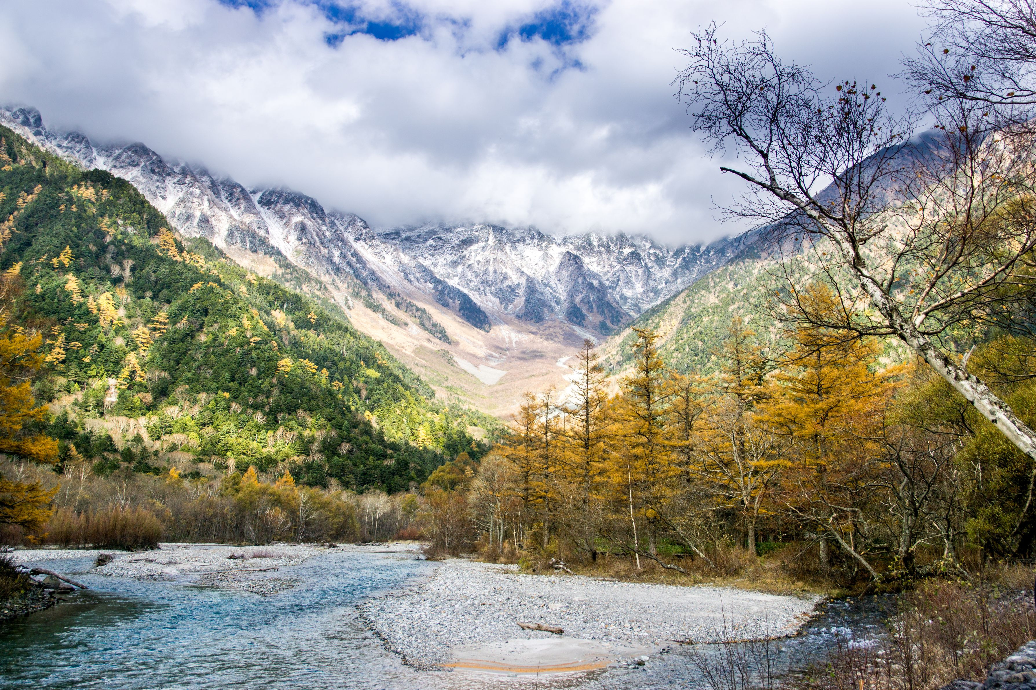 少し遅めの長野県上高地は初雪の薄化粧でさらに艶やかに
