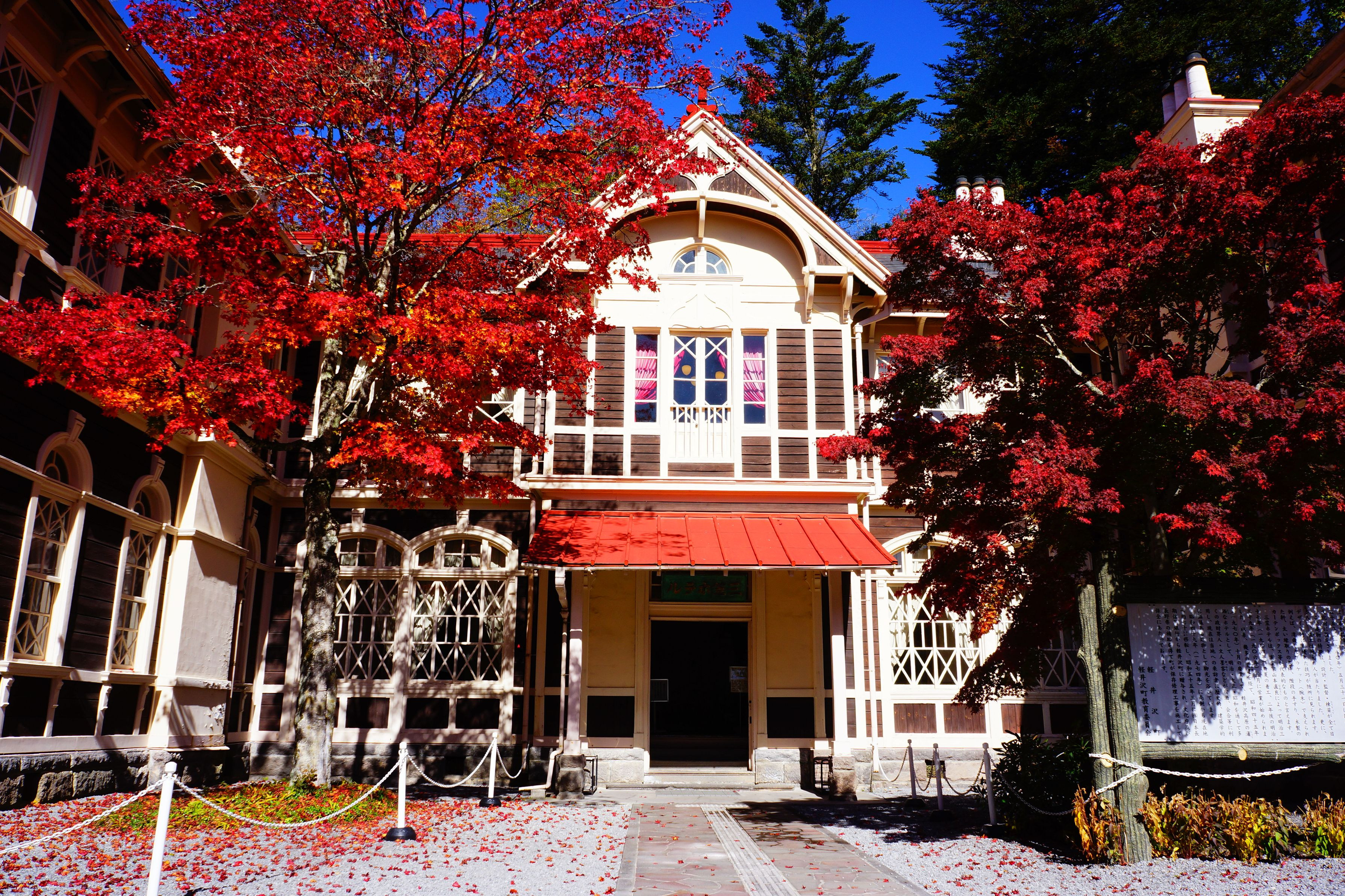 軽井沢の旧三笠ホテル前の紅葉は見応えありました♪♪