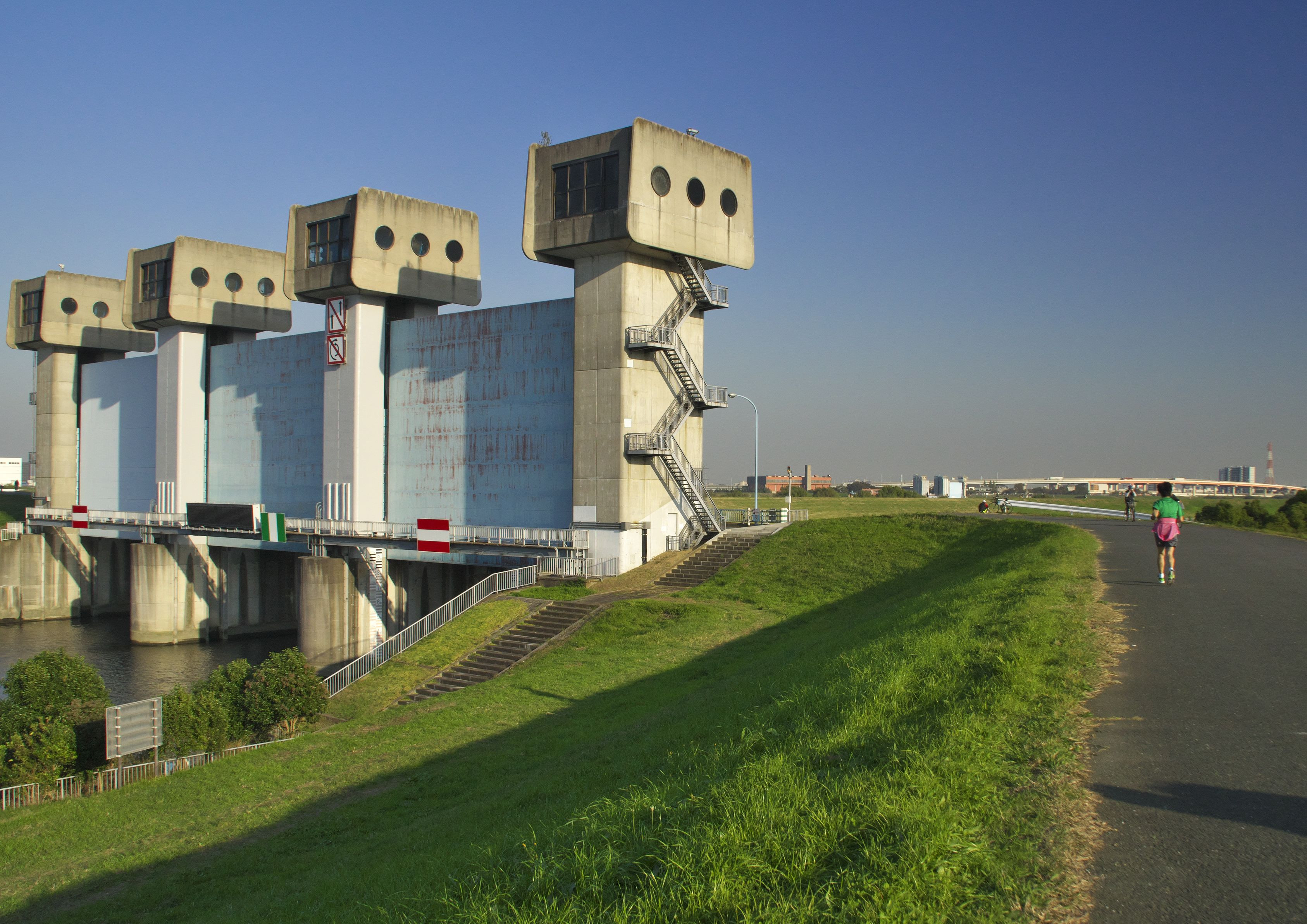 製品情報>My Sony>αcafe>午後の光と影 岩淵水門堤防(makuronoiwaさん)