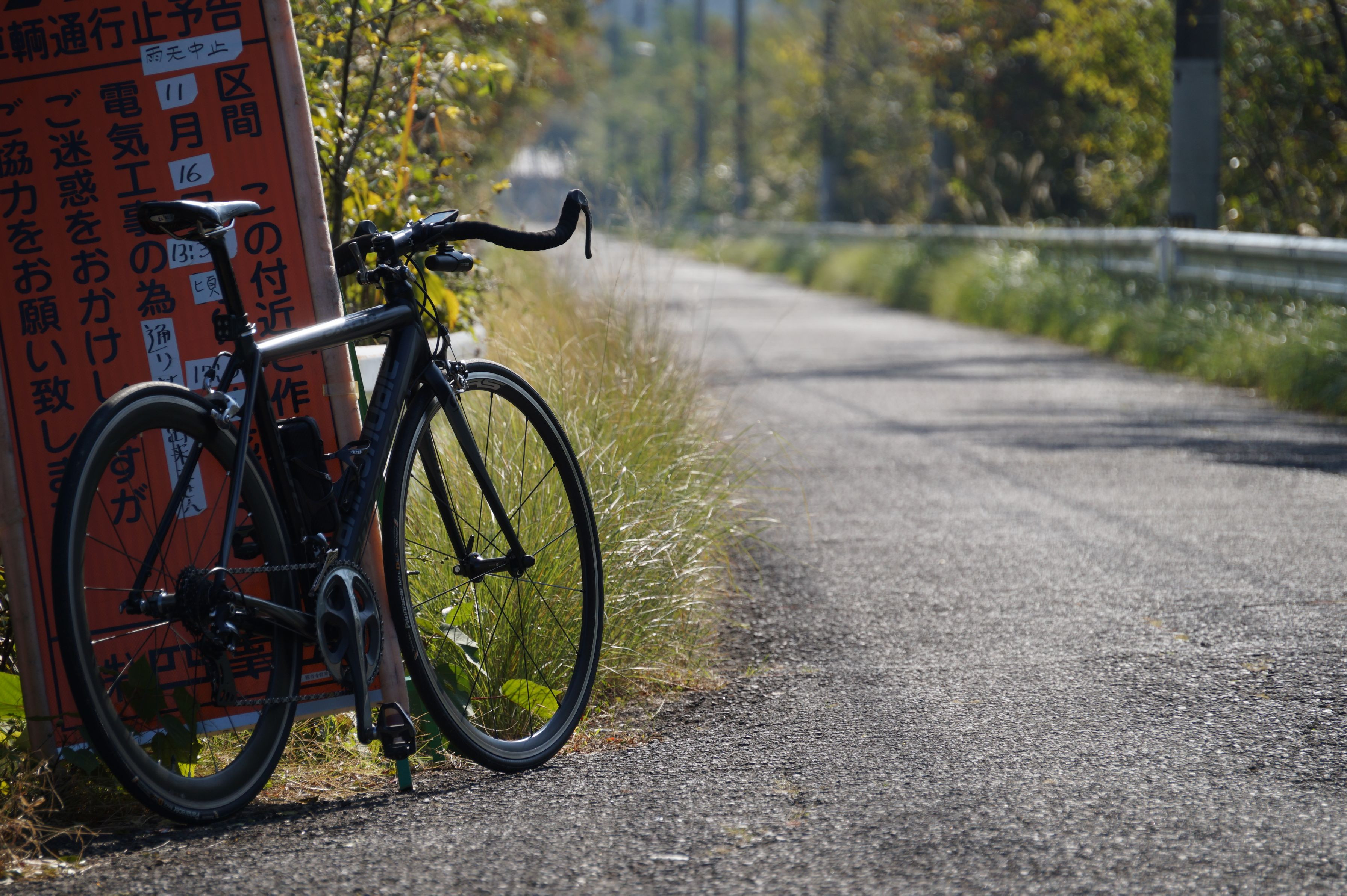 サイクリング中のひと休み。 何となく工事の看板を入れて撮ってみました。