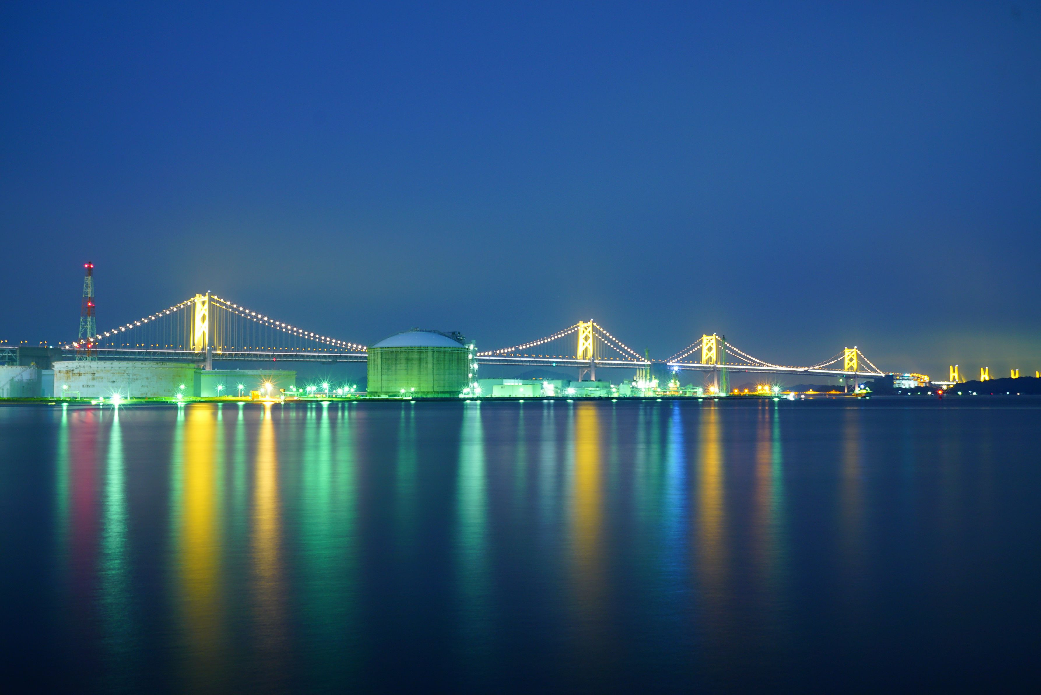 沙弥島(しゃみじま)と瀬居島(せいじま)の間を埋め立てて、昭和47年(1972)に造成された番の洲工業団地の中央を通る瀬戸大橋の南備讃瀬戸大橋です。
