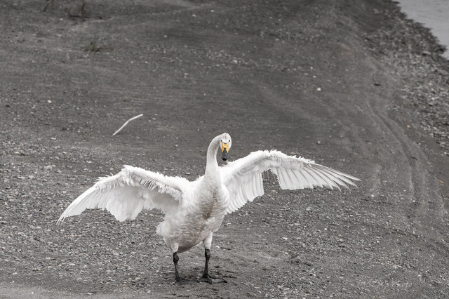 白鳥さんは、可哀想なことに羽に怪我をしているようでした。