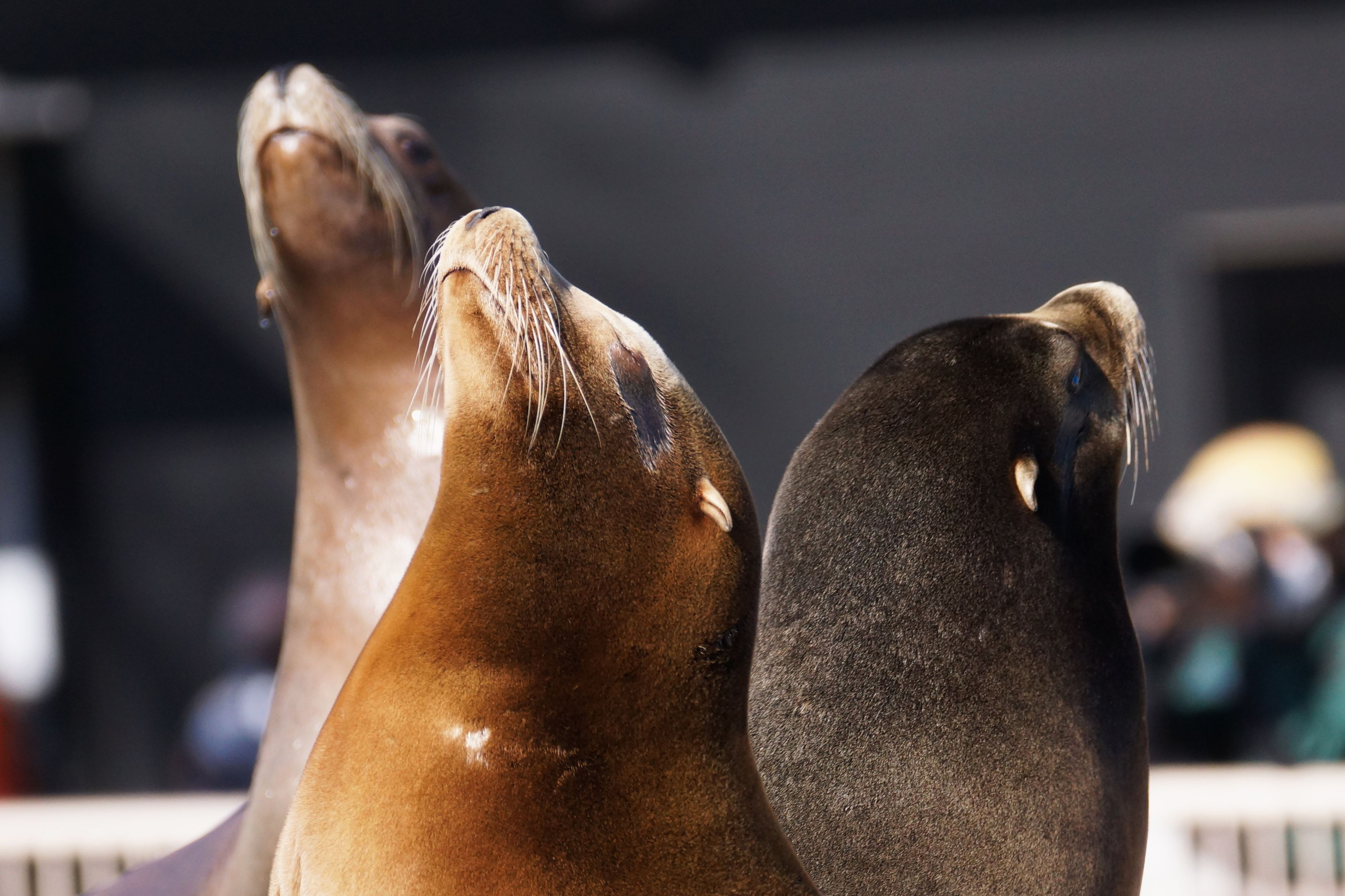 何かを気にして顔をあげる