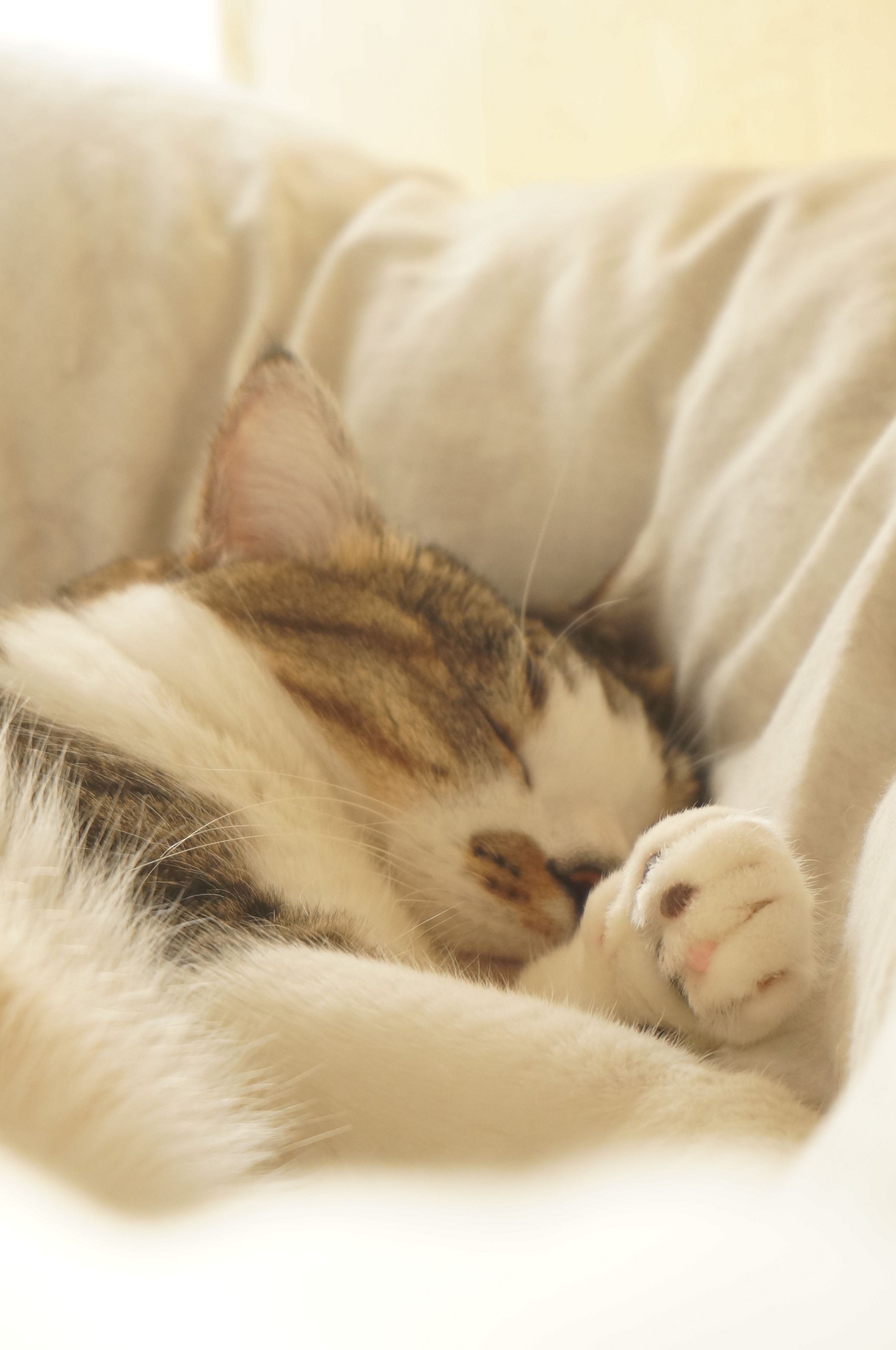 窓際。羽毛布団に埋まってお昼寝。