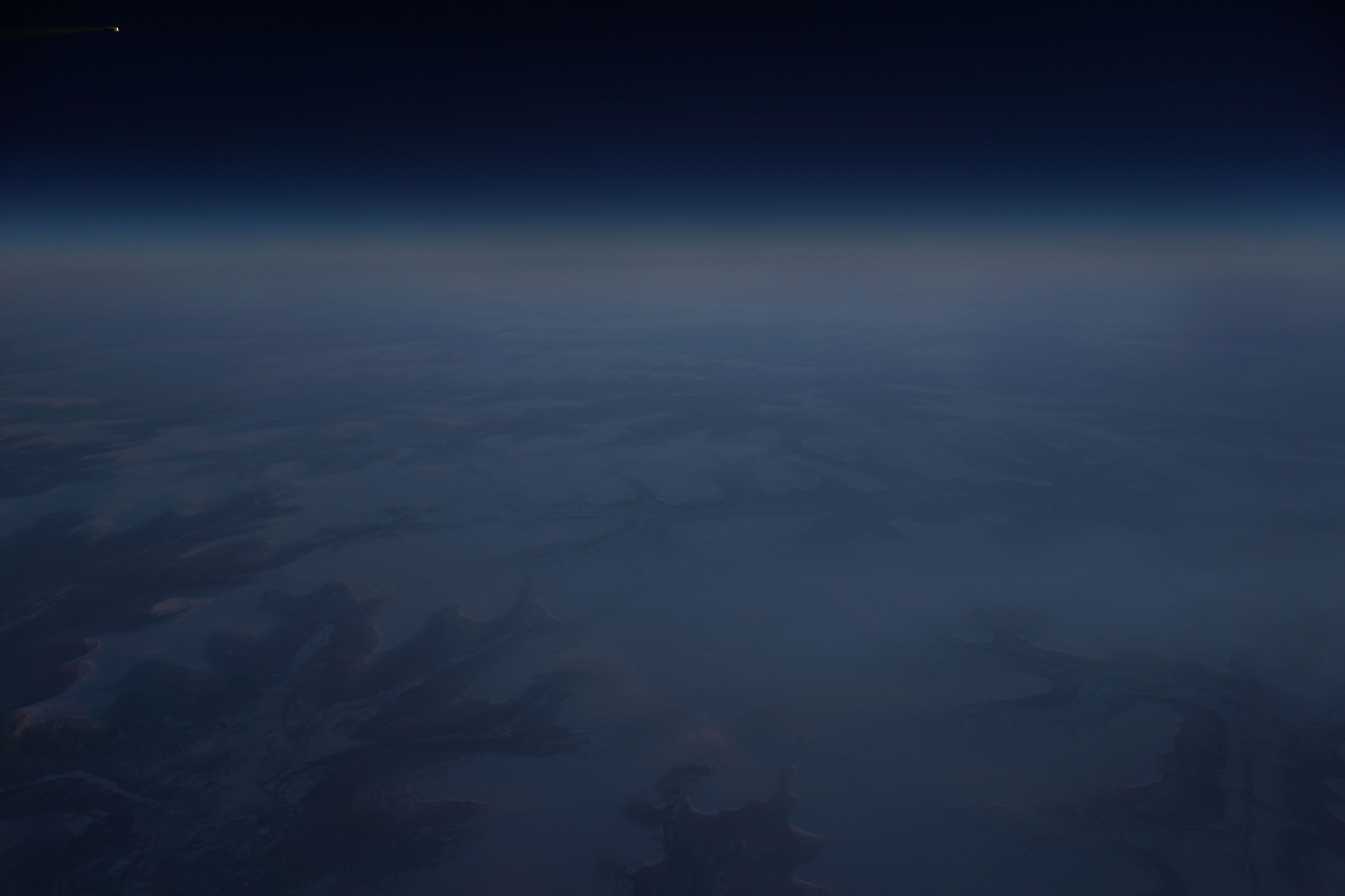 飛行機の窓からスカイHDRを使ってみたら、このような写真が撮れました。 夕暮れ後のちょっと暗くなってきた時間帯です。