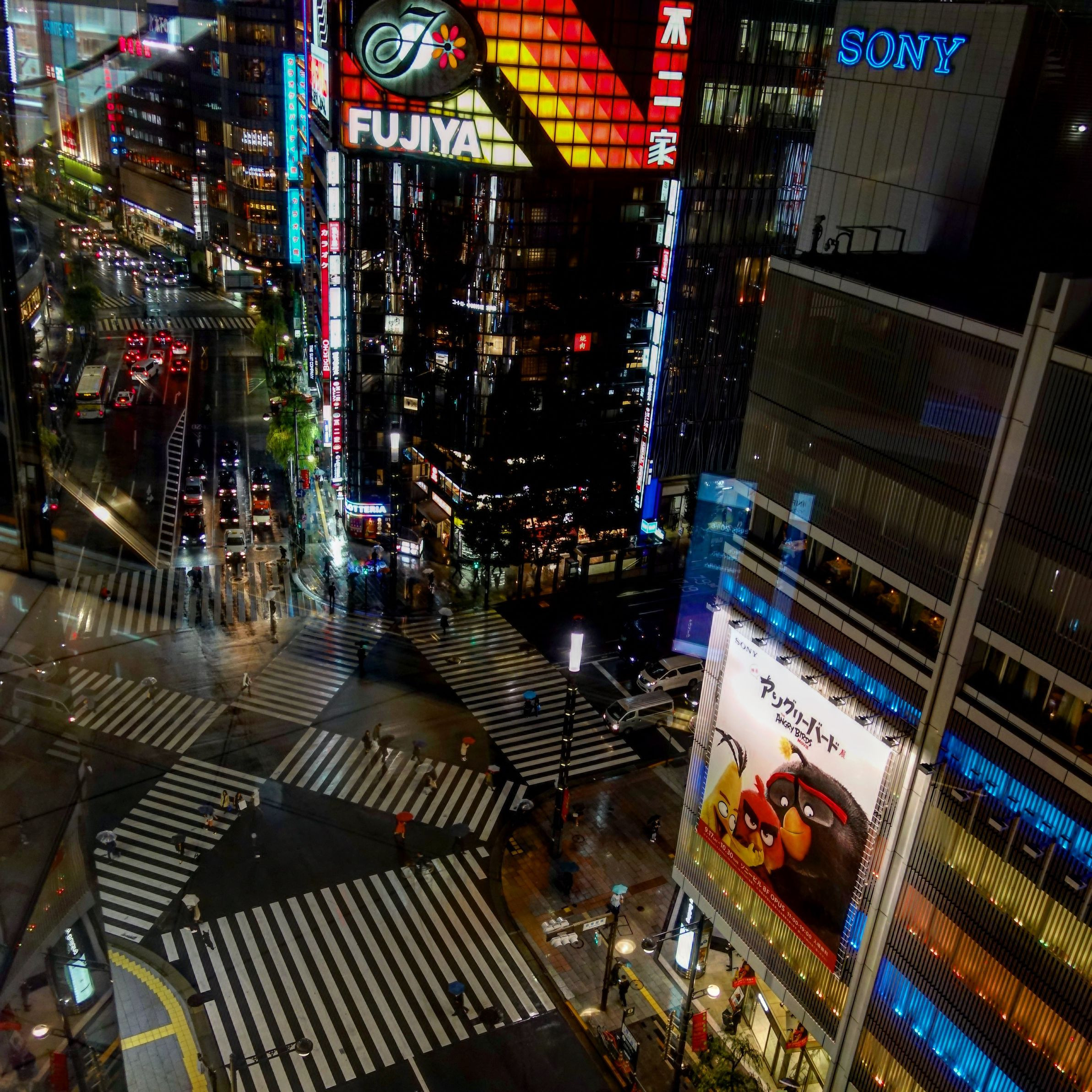 東急プラザ銀座から、数寄屋橋交差点を見下ろすように撮ってみました。