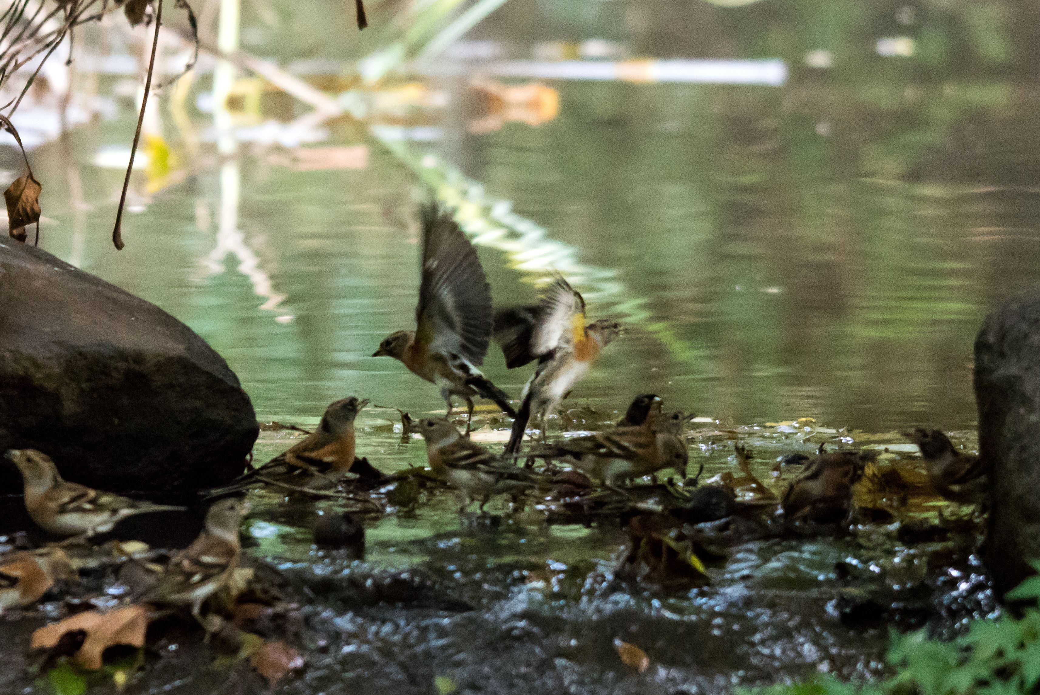 この時はこの狭い水飲み場に30羽くらいが集まっていました!場所が空くのを枝の上で待って、自分の入れそうな場所が空くと降りてきて!