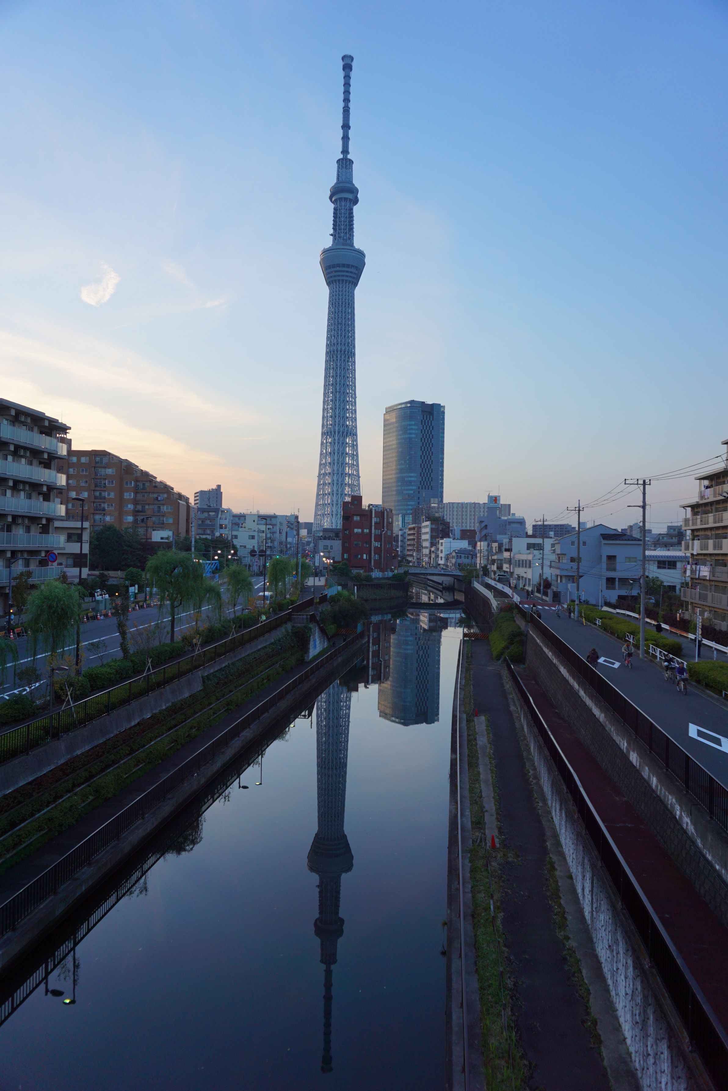 スカイツリーならぬ、さかさツリーです。水面に映る建物を写し込む写真が好きなので、夕焼けとマッチしていい感じに撮影出来ました。