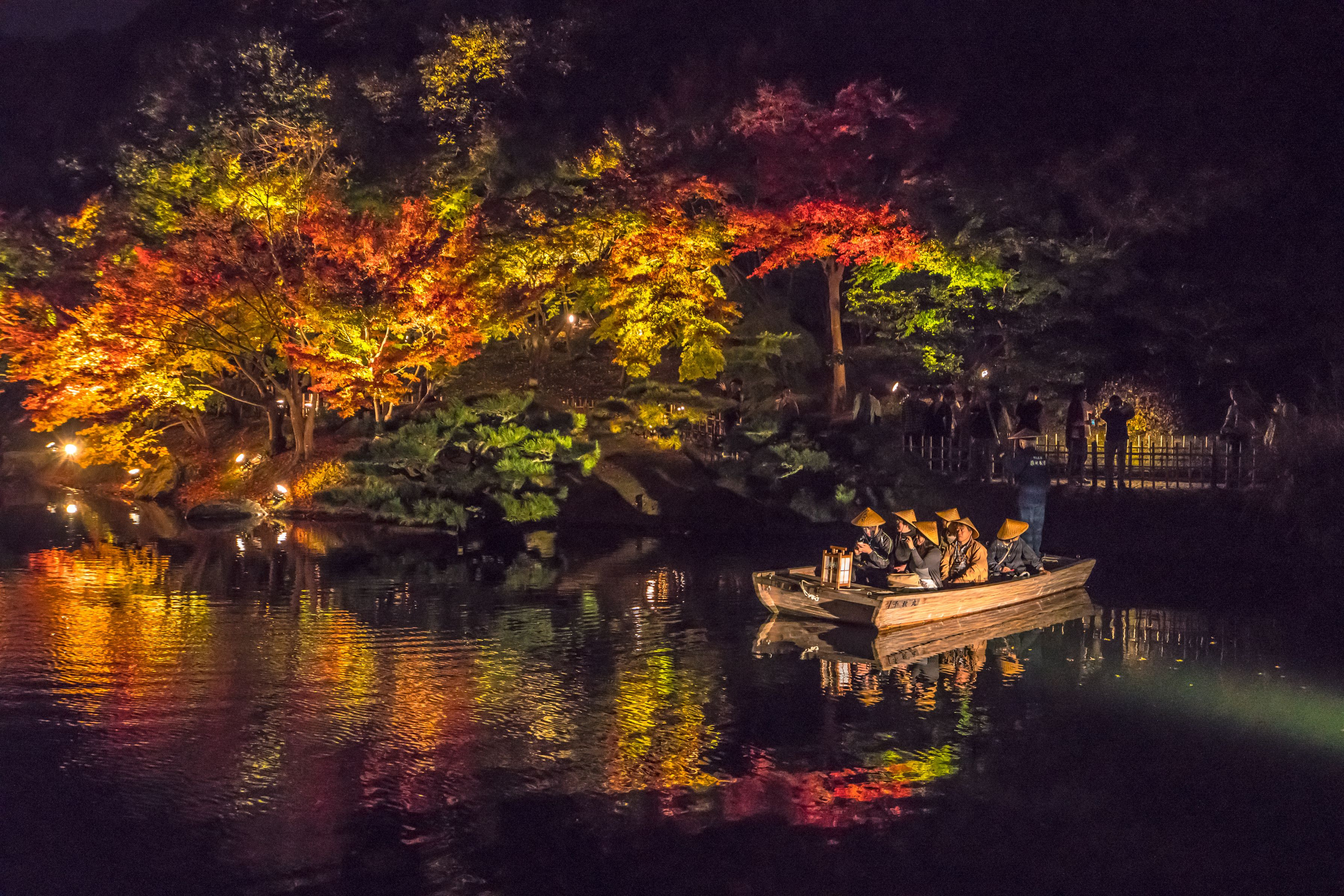 栗林公園のもう一つの楽しみ方。 ライトアップ期間中は和船の夜間運航17:30~20:00発を30分おきに運航しています。 ライトに照らされ幻想的な紅葉の中を船で見るのもいいかも知れませんね(*゚▽゚*)