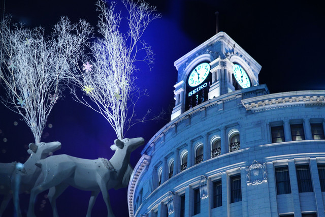 銀座の夜の街は、大勢の人で賑わっていました。グループでお勉強させて