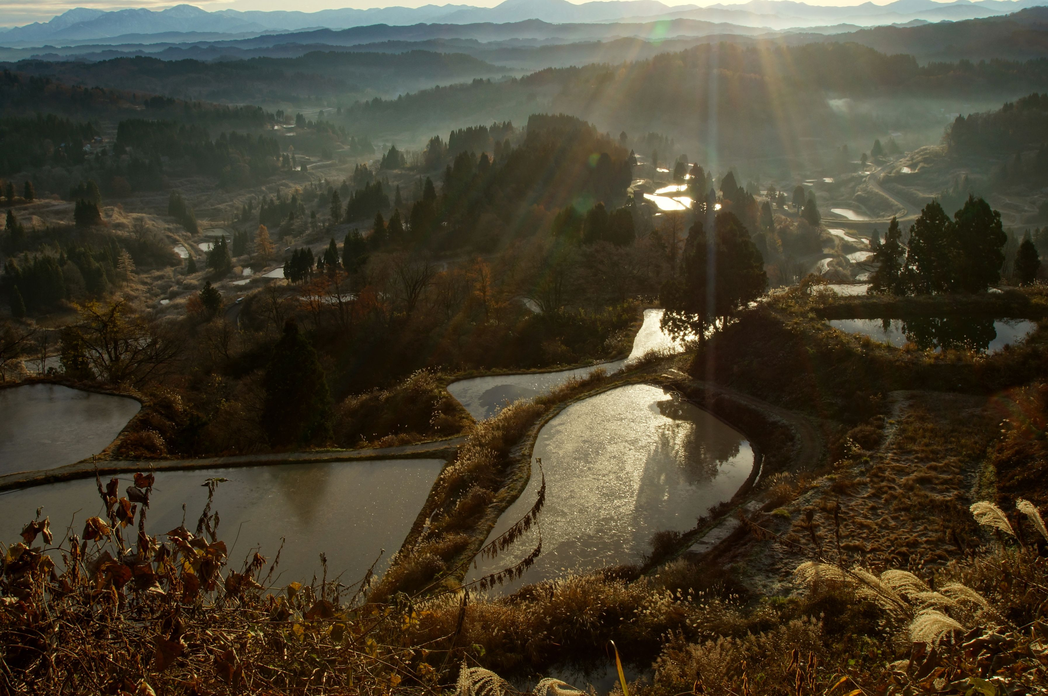日が昇り端子の梯子が降りて来ました。