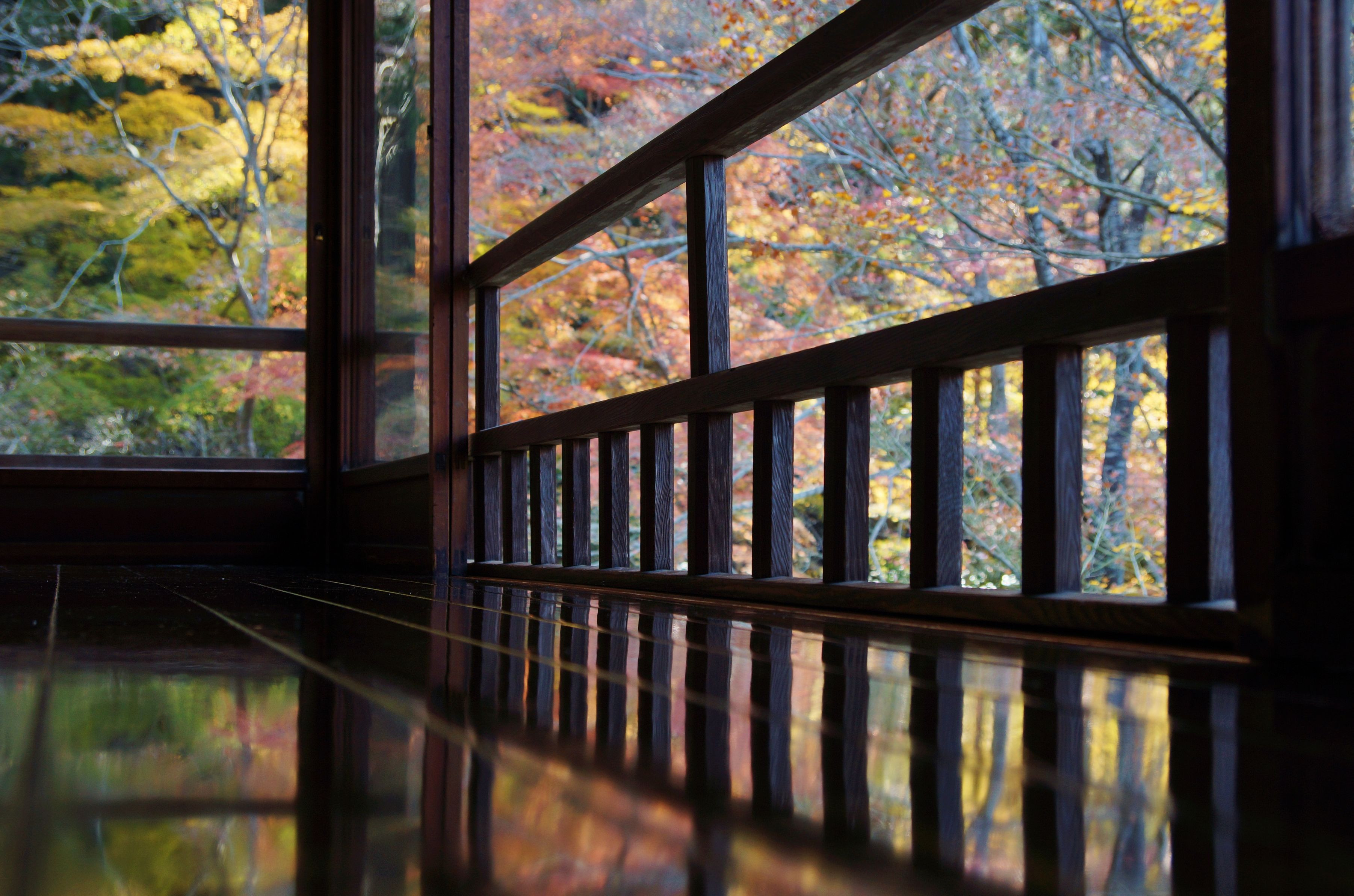 京都八瀬大原にある瑠璃光院の書院2階で撮影しました。 見ごろを過ぎてしまいましたが、映り込みはイメージ通りの写真が撮れました。