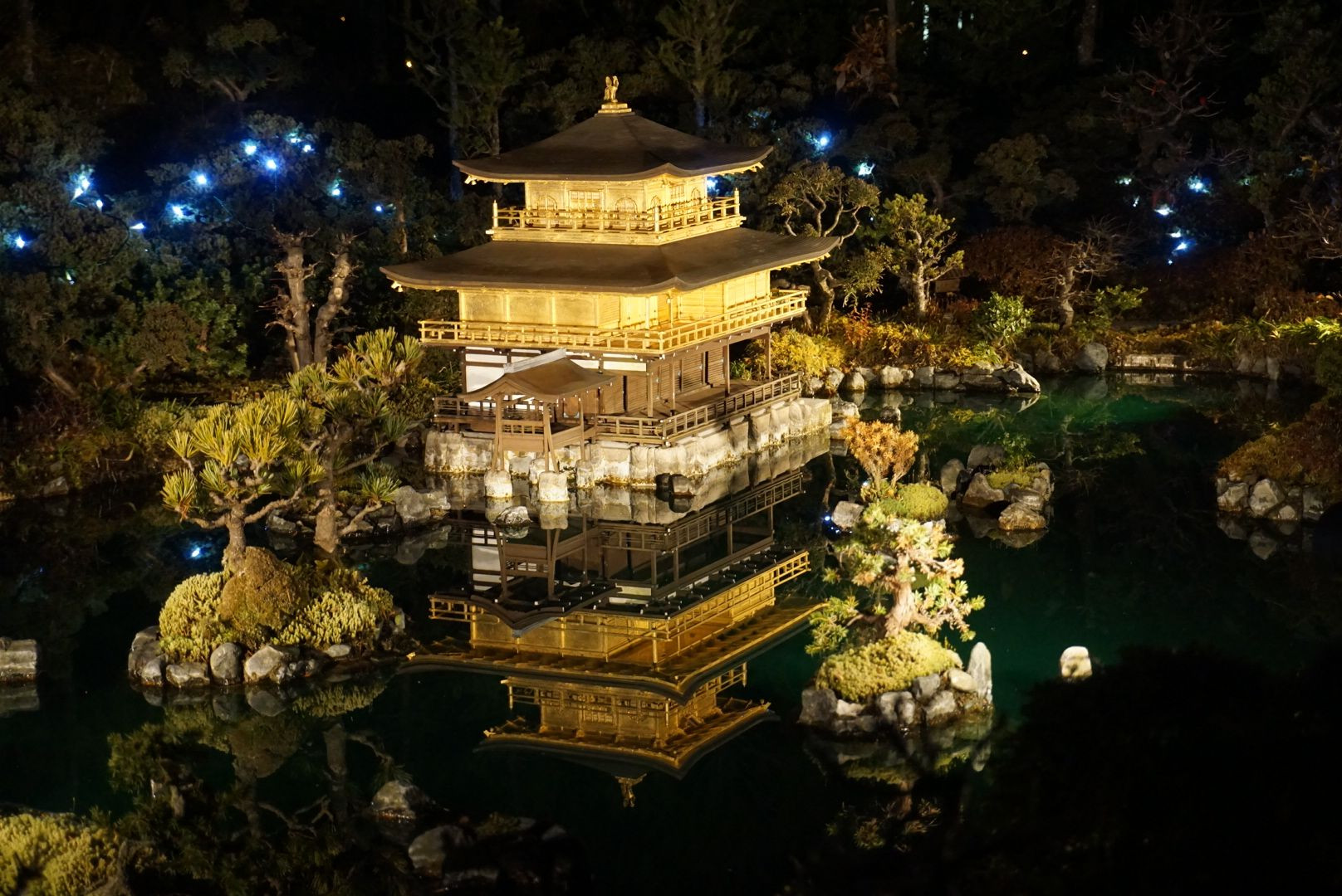 水面に写る金閣寺!本物に見えるけどミニチュア