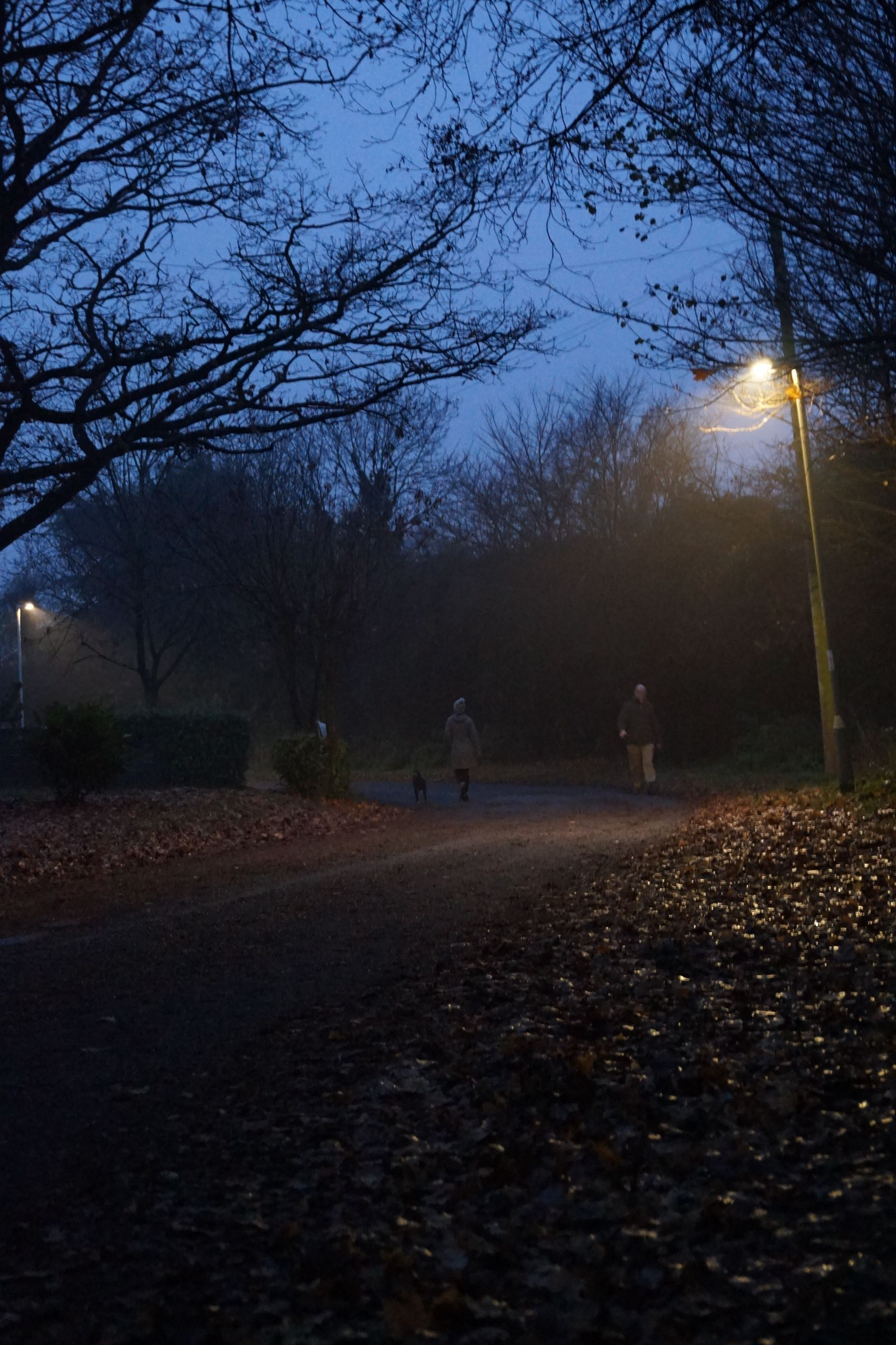 やっと夕方散歩に行く余裕ができました。近所のお気に入りの道です。 3.30ごろからあっという間に暗くなります。 今日は一日中霧がすごかったです。
