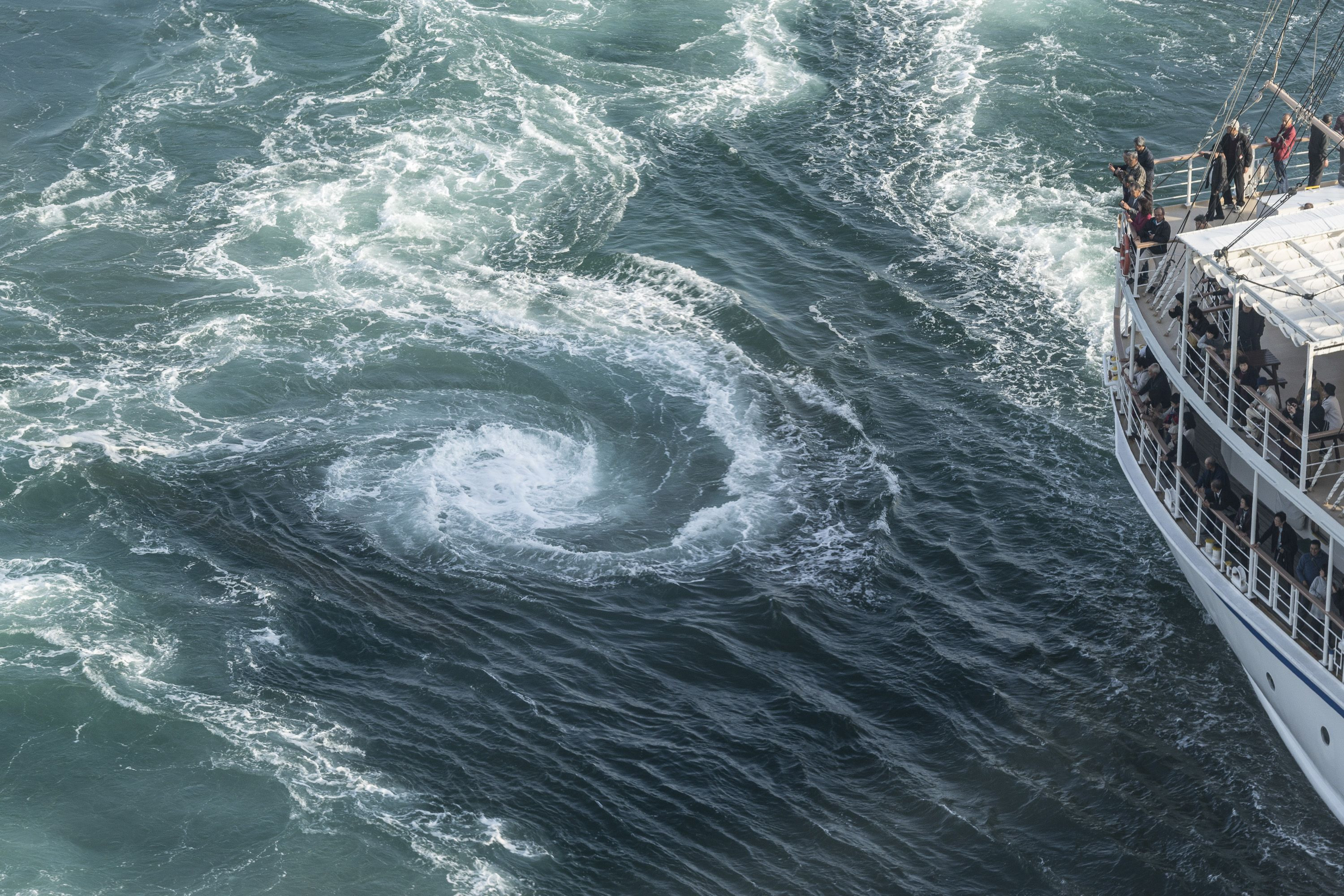 渦潮だけを撮るとその大きさが確認できません。船と同時に撮るとその大きさが分かります。でも、うまい具合に大きな渦ができている時に、船が近づいてくれるのはなかなか難しいですね。