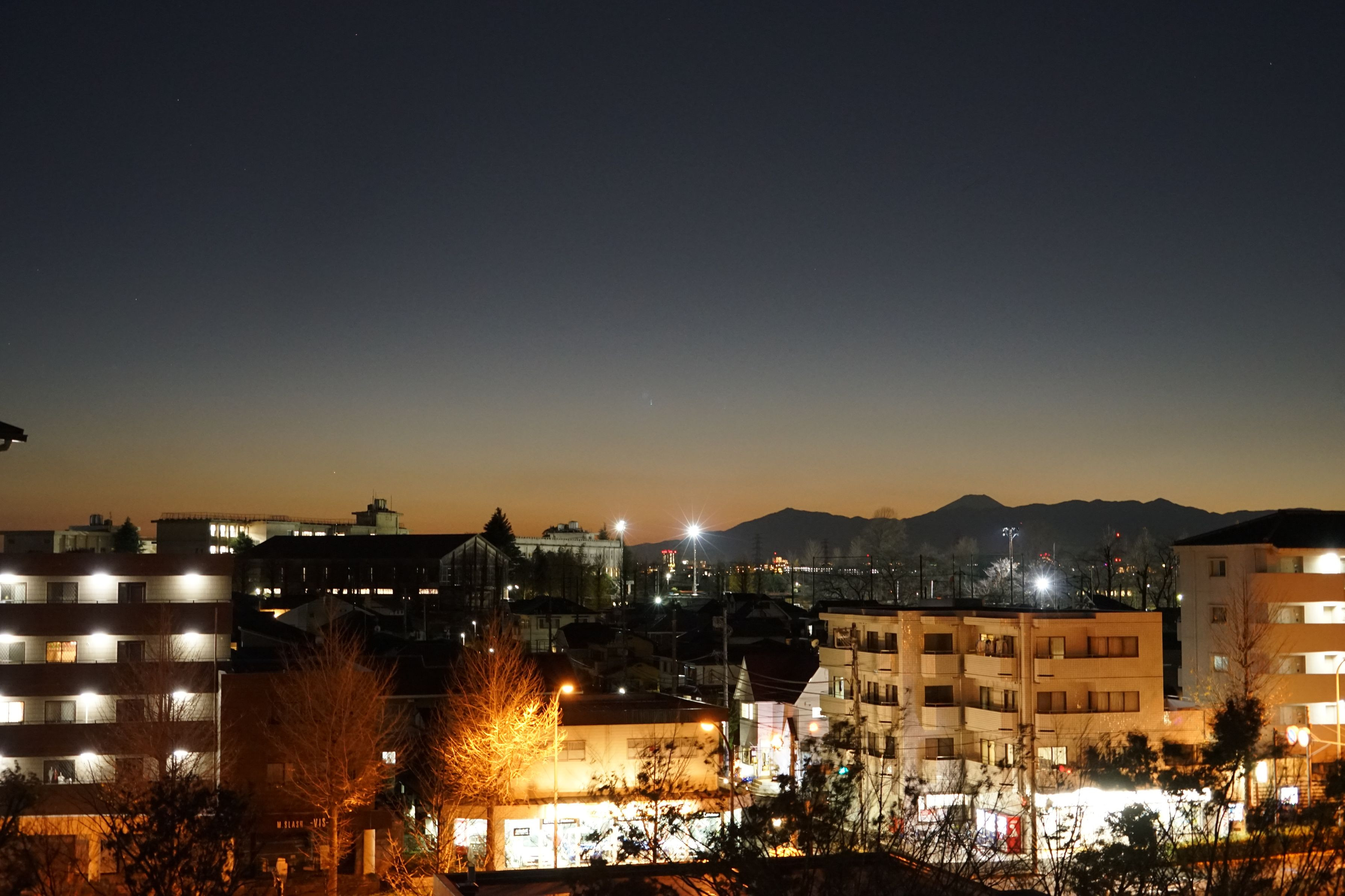 12月6日(火)の天候は午前中は比較的暖かかったが、午後から急に冷え込んで寒い日没になりました。たまたまベランダに出たところ、雲一つなく遠くに富士山が寒そうにクッキリ見えたので、慌ててカメラを出し手撮りしました。