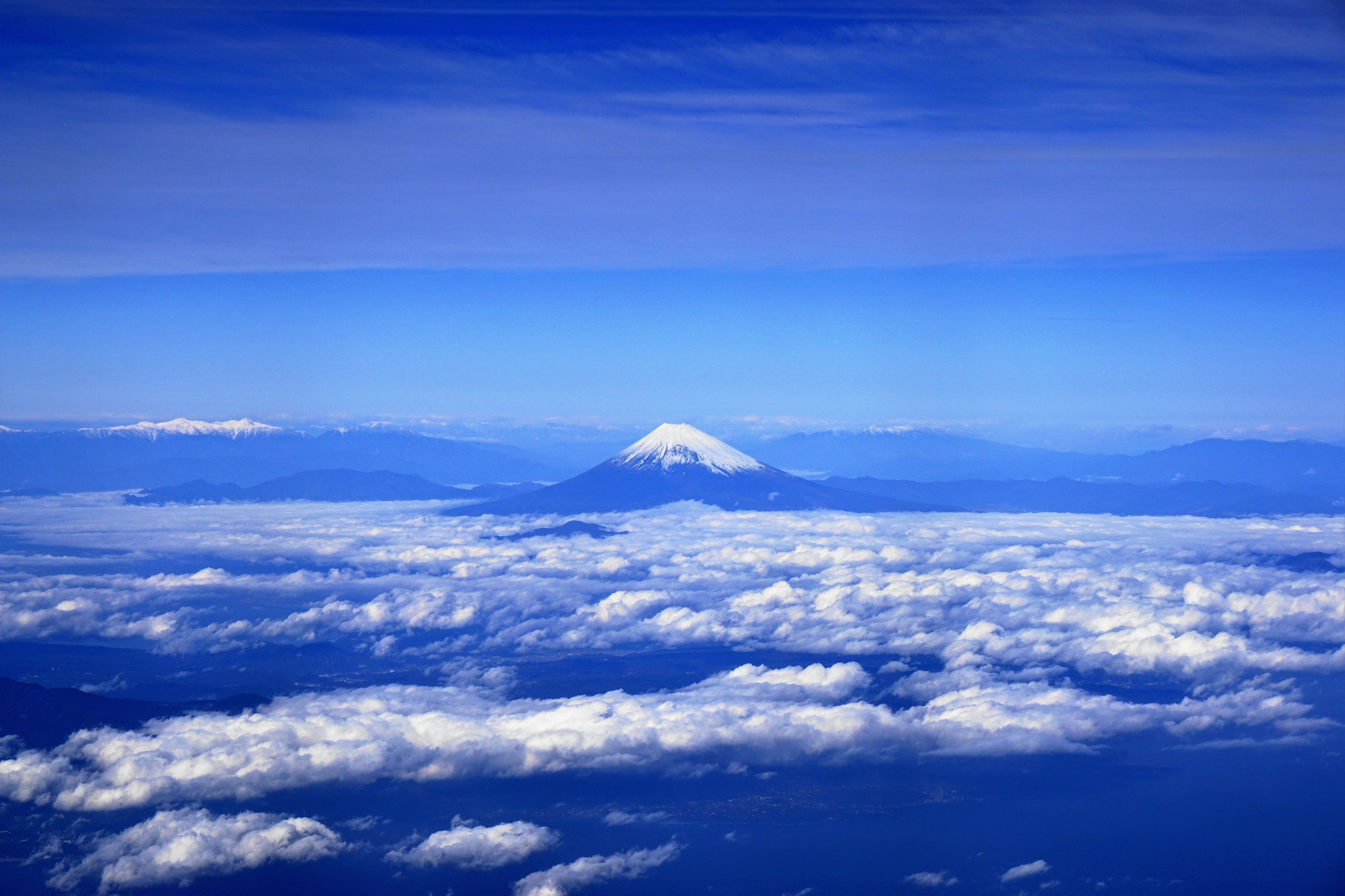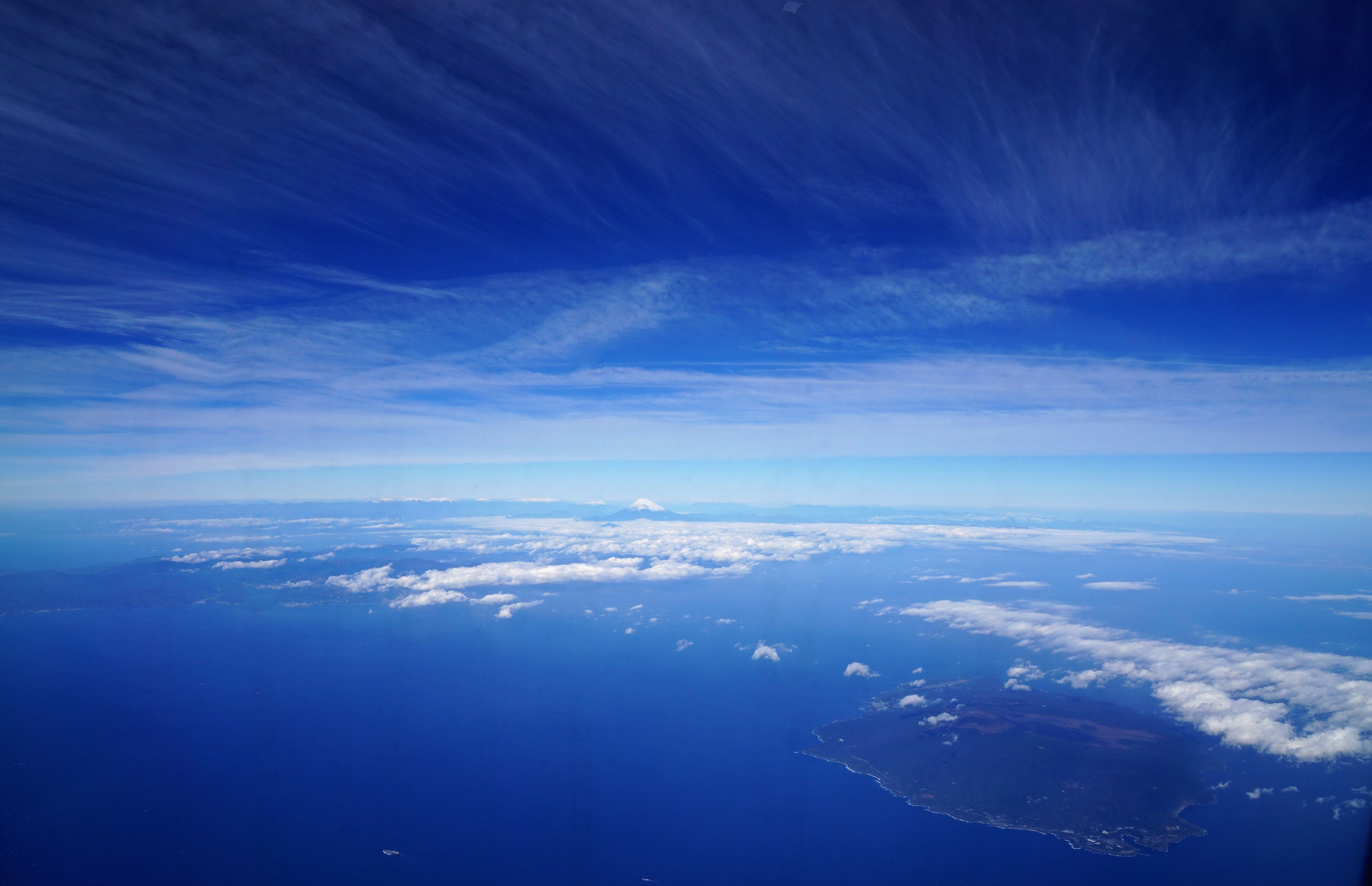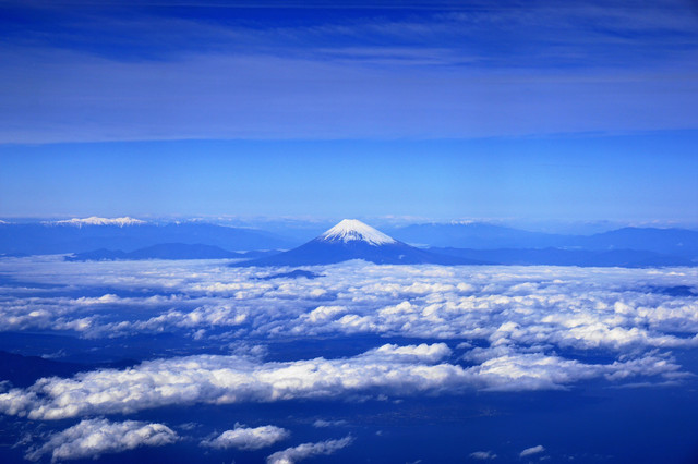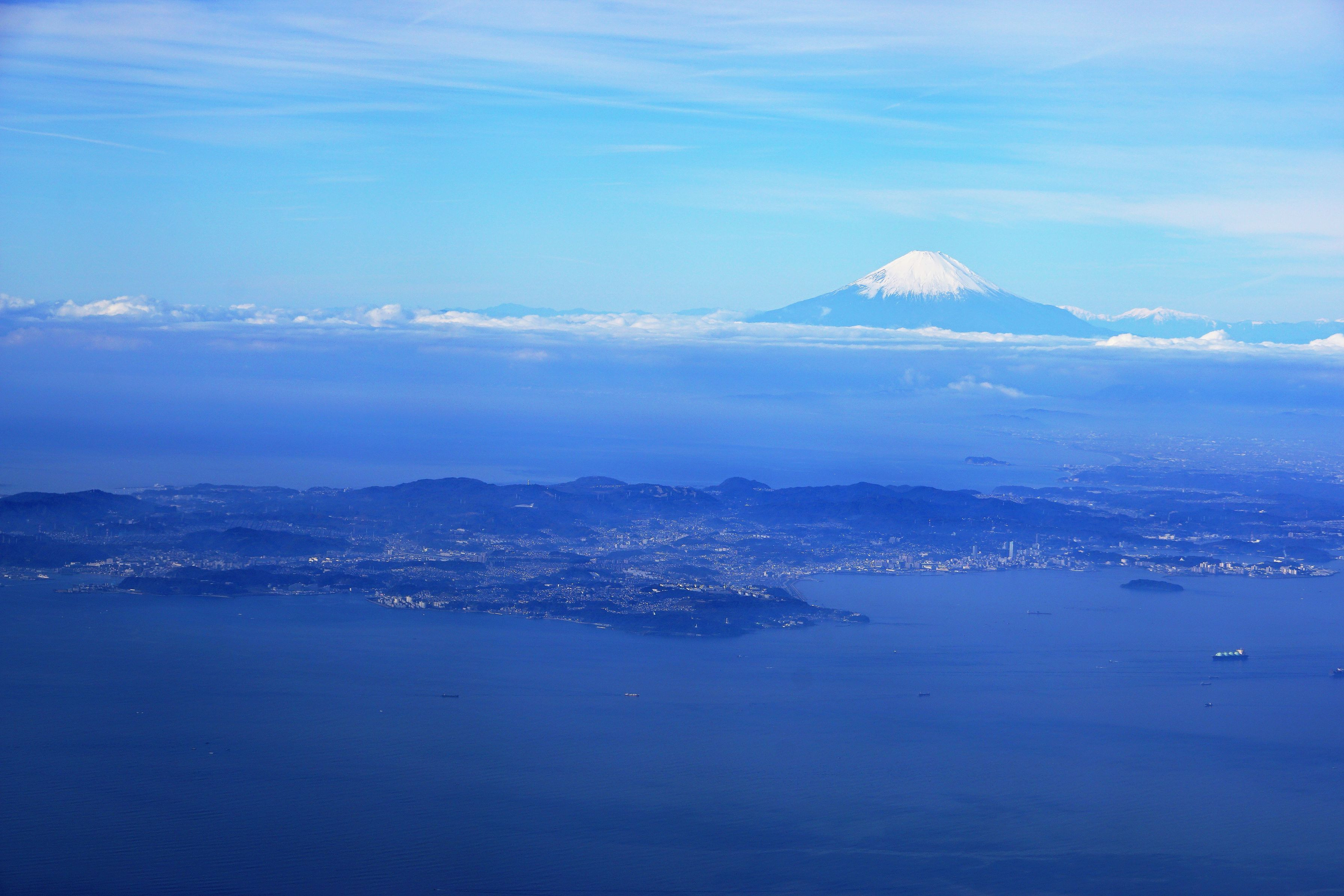 いつもながら、出張の為乗った機上からの撮影です。南アルプス、伊豆大島、三浦半島とのマッチングです。