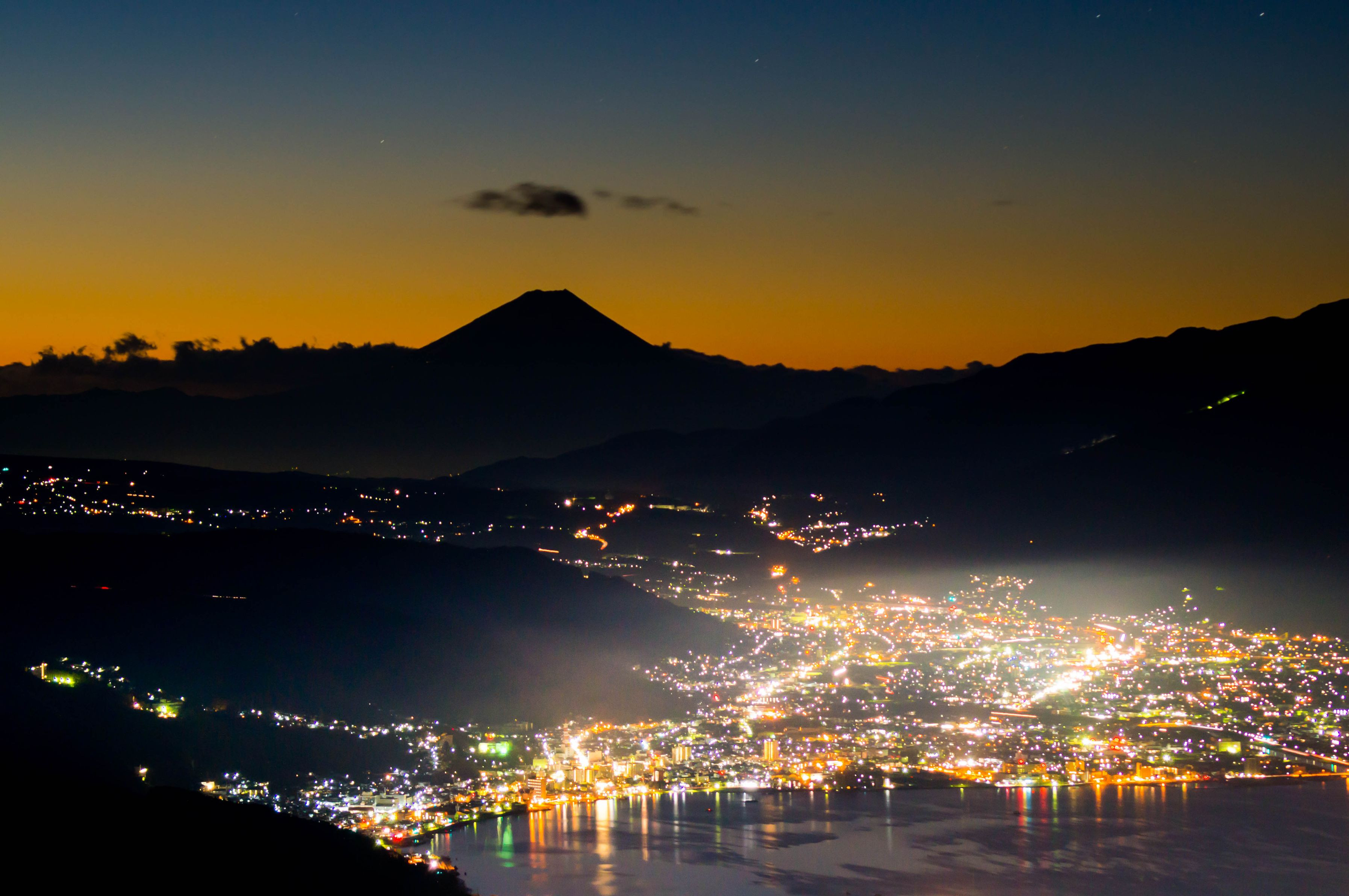高ボッチから望む諏訪湖と富士山