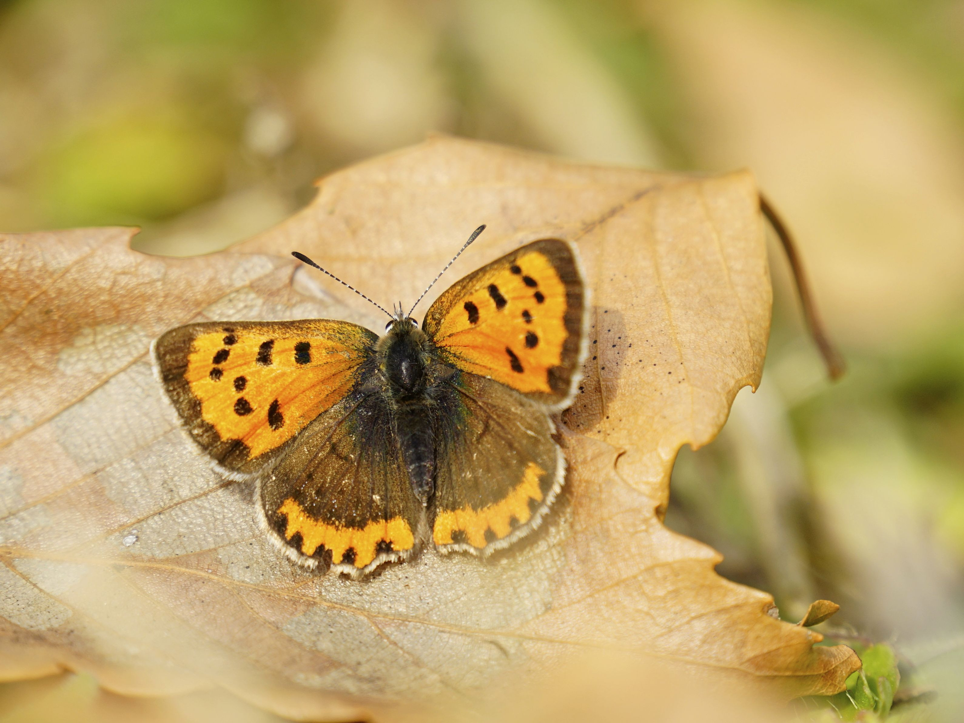 落ち葉で日向ぼっこするベニシジミ