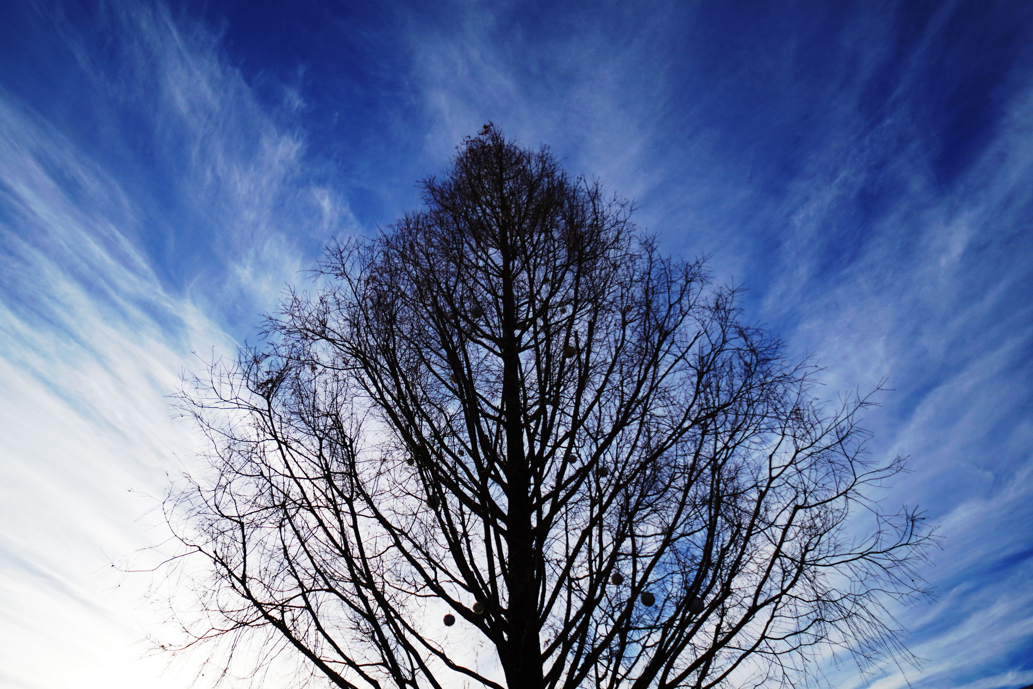 ライトアップ直前の樹木を仰ぎ見ていたら、空を流れていた雲と樹木の枝が調和しているようで、とても美しく感じました。