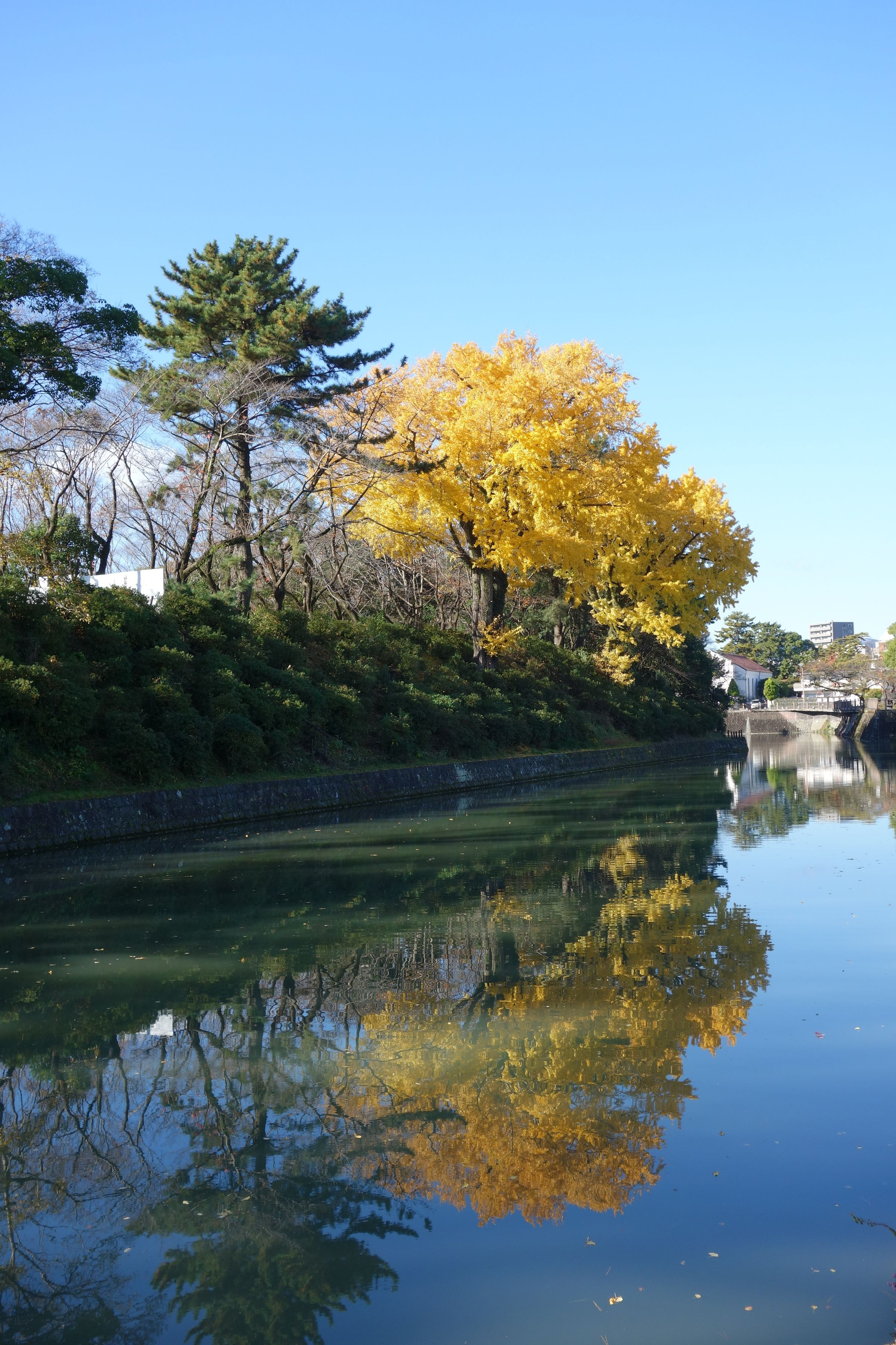 駿府城公園の内濠にあるイチョウの巨木2本。