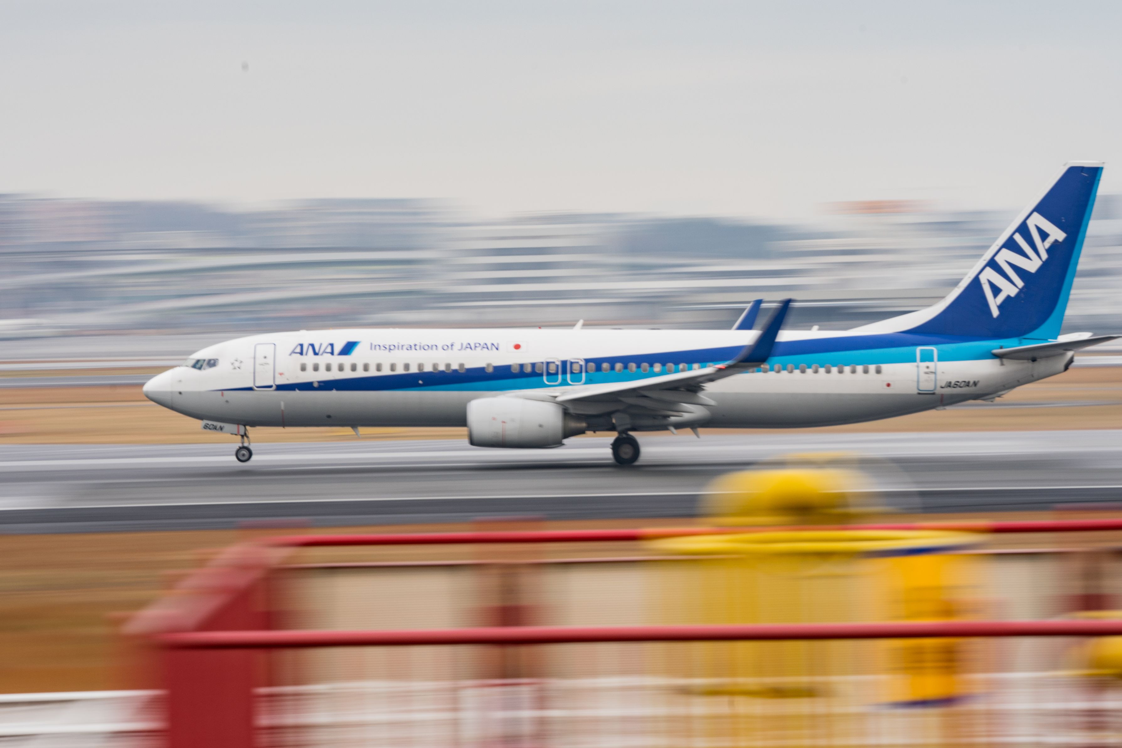 ANAのブルーと遊具の赤黄が生えるので、ここでひたすらカメラ振ってました。練習あるのみ!