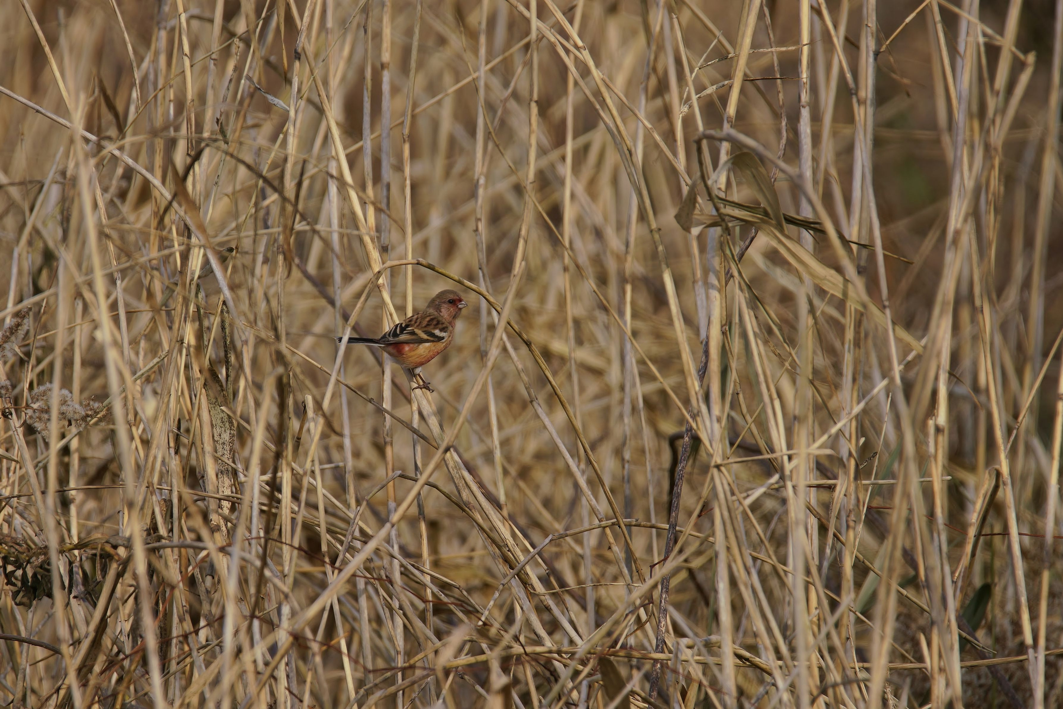 探していたベニマシコのオスがなんとか撮れました。 体の紅色は控えめですが・・・ 以前撮れたメスと一緒に出しますね。