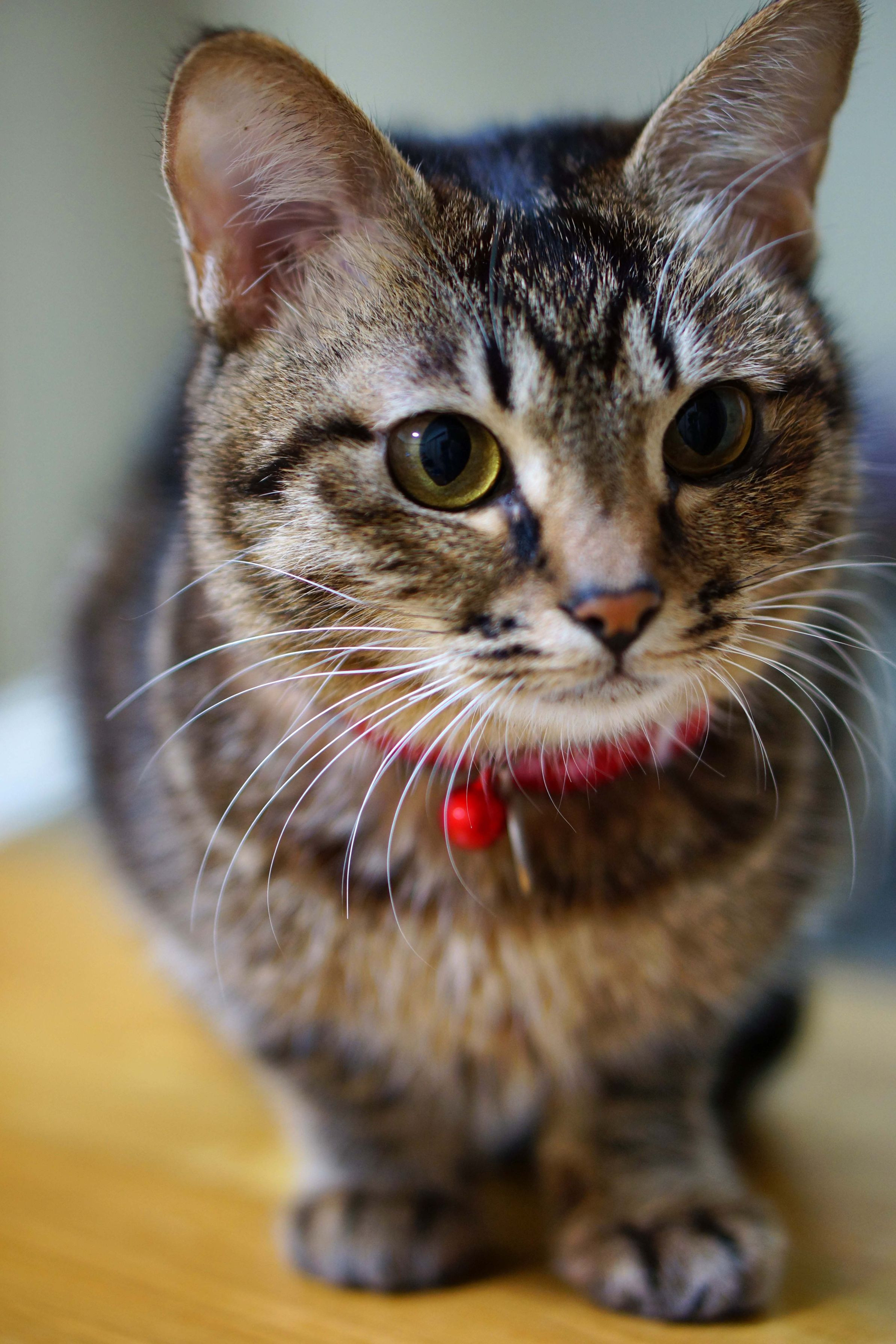 人生初めての首輪をした明日葉さんです。現在1才と7ヶ月・・・・!(^^)! でも、苦しいみたいなので、すぐに外しましたが、赤い首輪がお似合いでした。